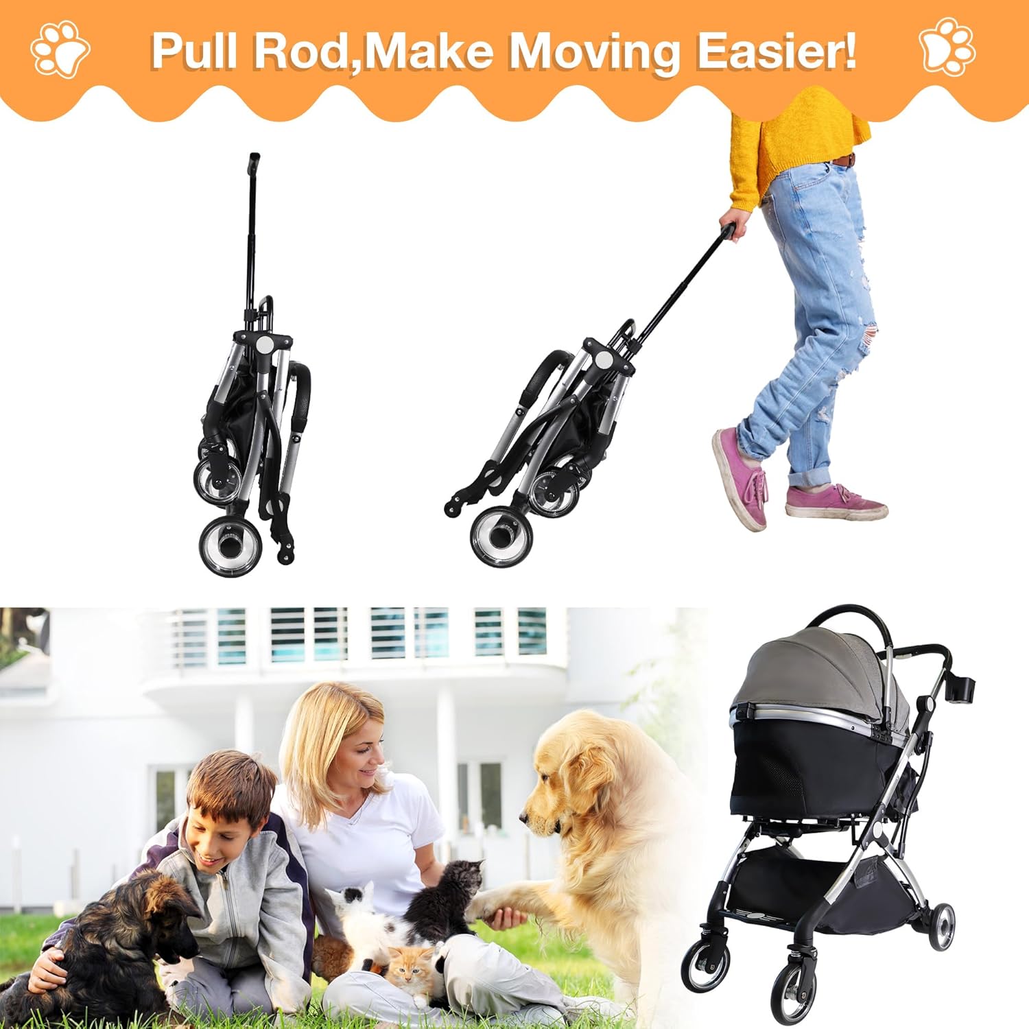 - 【Versatile 3-in-1 Design】Enjoy the convenience of a lightweight pet stroller, a car seat, and a detachable carrier all in one! This design saves you money and allows you to easily take your furry pal anywhere you go. The Zip-free canopy for easy pet access.