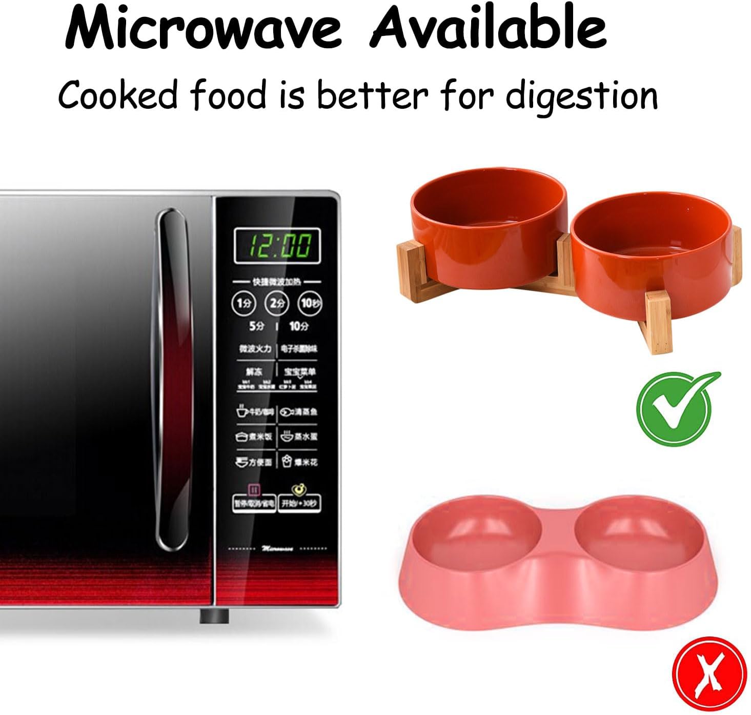 - Double Bowl Design:One dog bowl for food and one for water, Each ceramic cat bowl has a Unique wooden stand, raising the dishes closer to your pet for more comfortable eating
