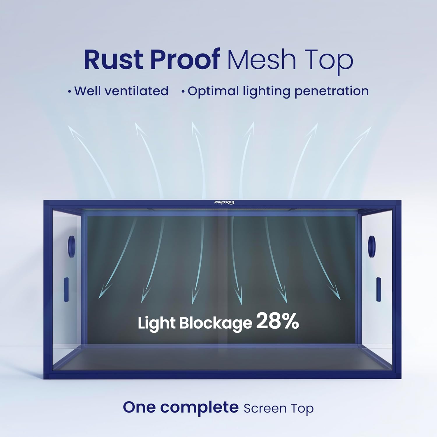 - ăHighly AdaptiveăWell-lit screen top with only 28% blockage. Compatible with many reptile accessories and equipment, such as heat lamps for reptiles, reptile humidifiers, reptile misters, reptile foggers, reptile UVA and UVB. Our reptile terrarium is great for holding temps and humidity.