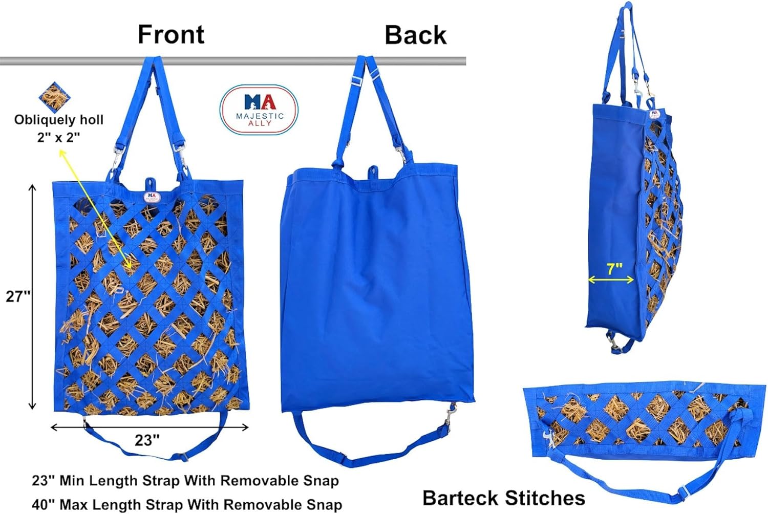 Majestic Ally Premium Nylon Hay Bag for Horses and Livestock, Simulates Grazing, Slow Feeding, Heavy-Duty PP Webbing,Quick-Adjust Straps, Small Hole for Digestion, Multiple Colors (Hunter Green)