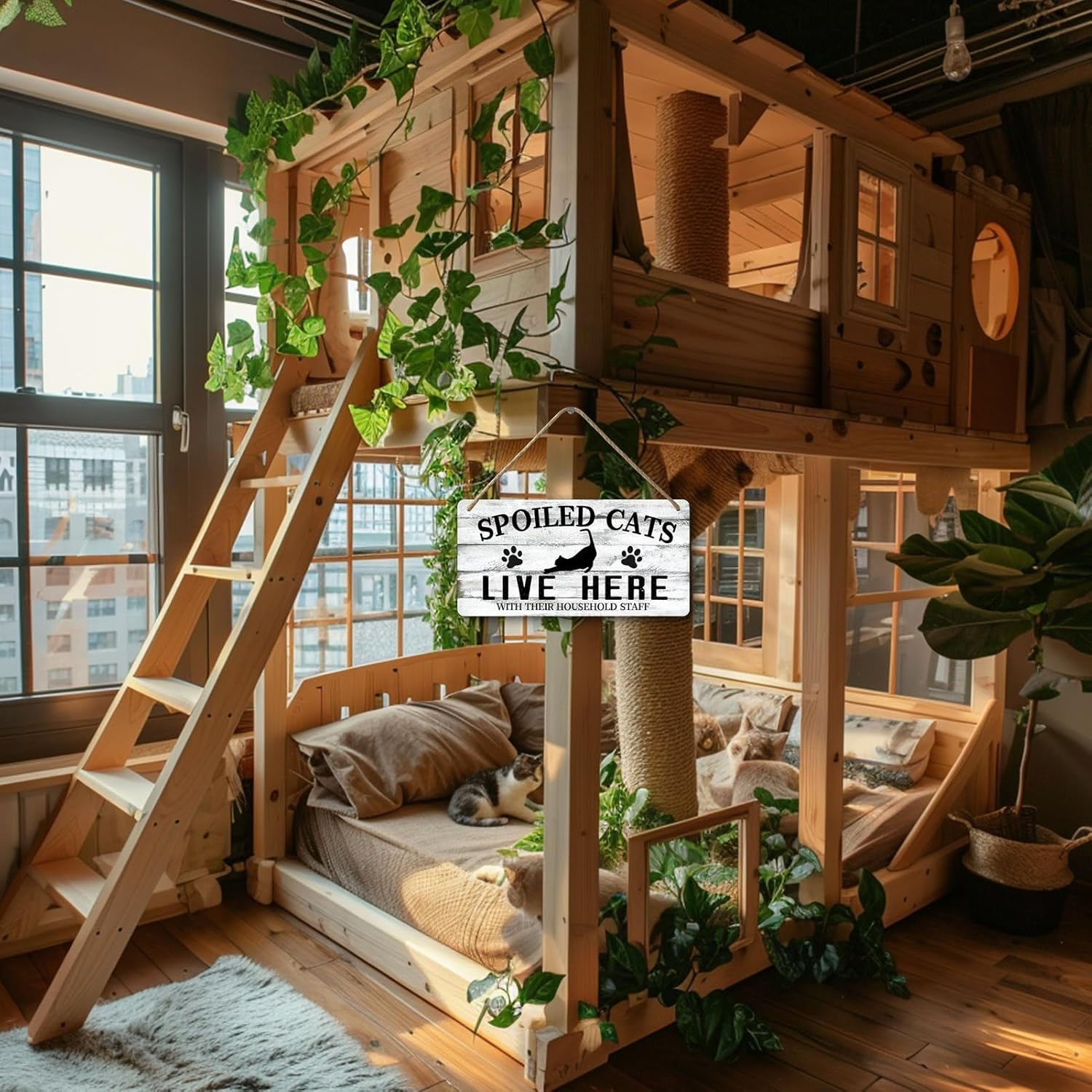 - SIZE FOR CAT WALL DECOR : 12 x 6 inch personalized text " Spoiled Cats Live Here " to add fun and color to your cat room.