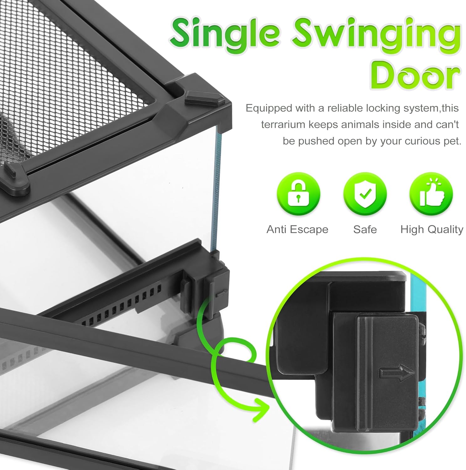 Mini Reptile Glass Terrarium 8"x8"x6" Durable Reptile Habitat Tank with Heat Resistant Aluminum Alloy Frame, Single Swinging Doors for no Jam by Sand and Other Debris