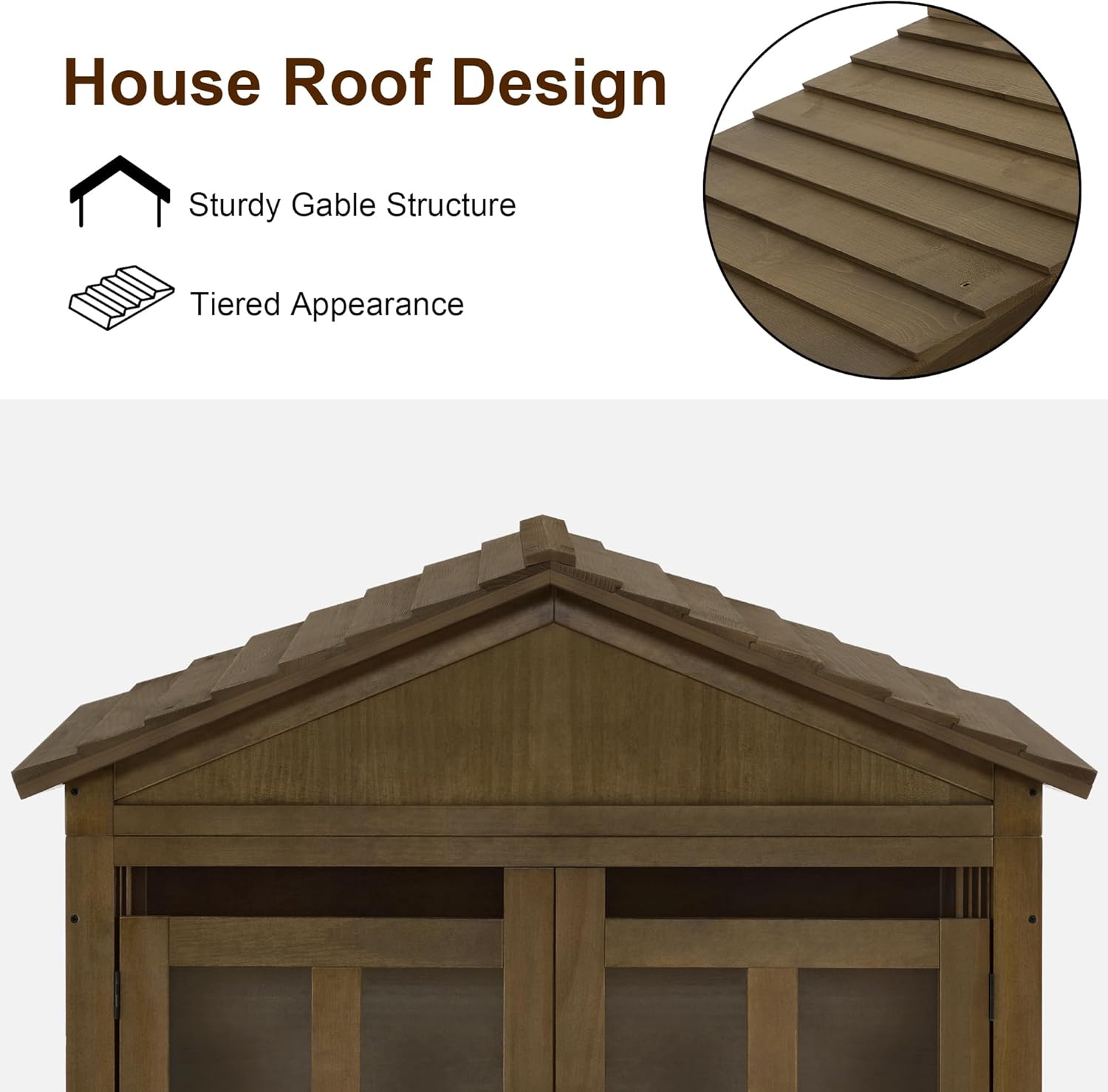 MCombo Wooden Dog House Furniture, Solid Wood Pet Kennel Indoor for Small/Medium Dogs, JD54 (Brwon, Medium)