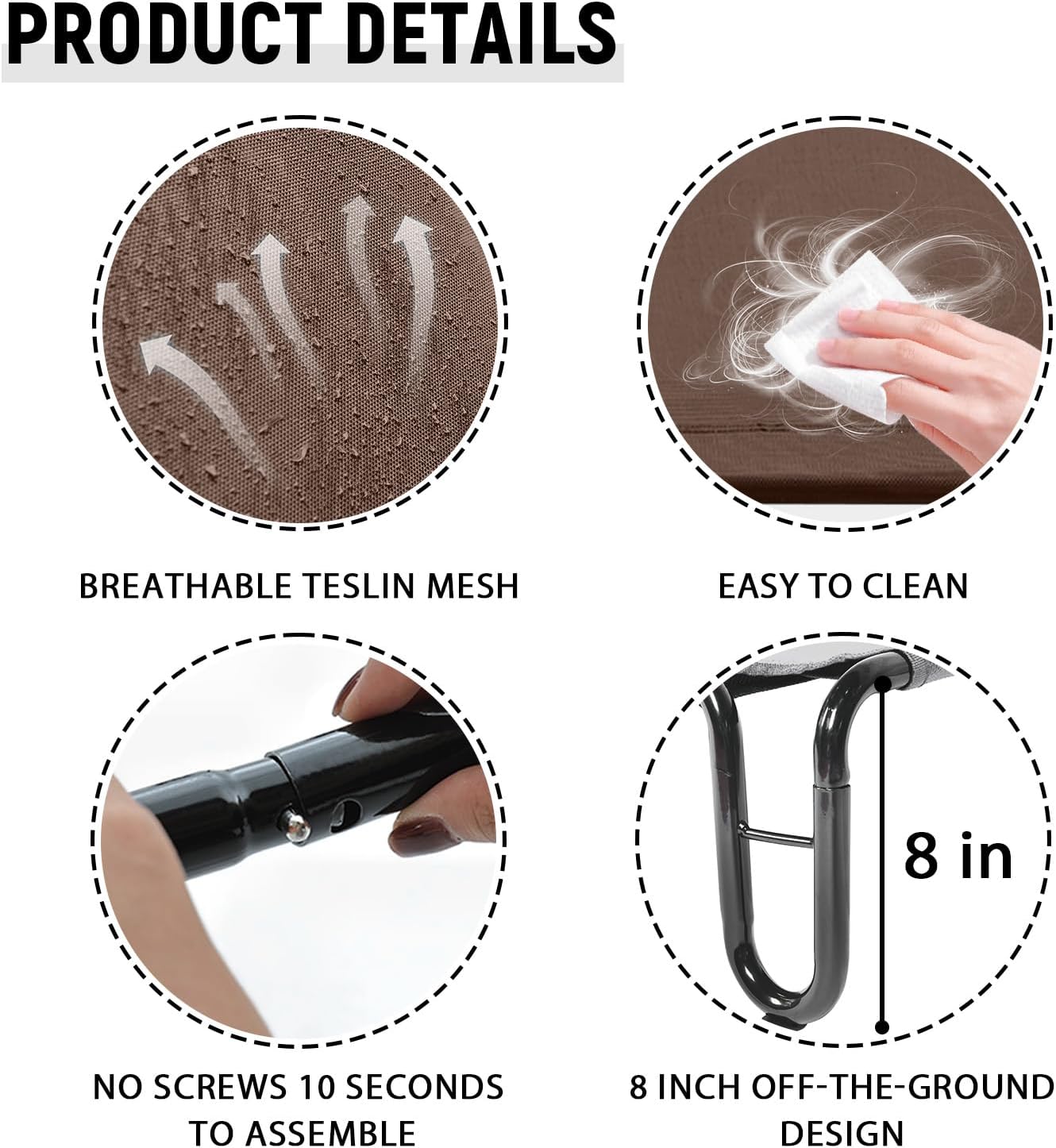 pettycare Elevated Outdoor Dog Bed - Cots Beds for Medium Dogs, Waterproof, Raised Cot, Easy to Assemble, Cooling with Teslin Mesh, Durable, Non Slip, Up to 40 lbs, Brown