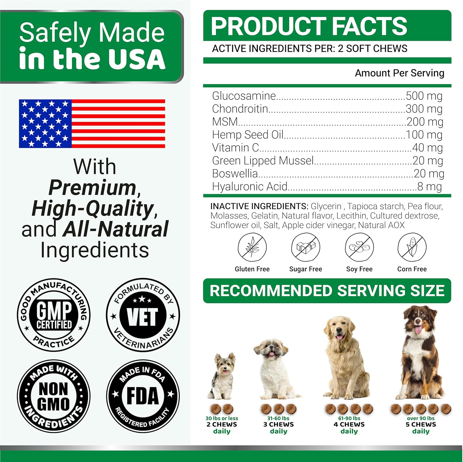 - Veterinarian Formulated & USA Made: Trust in the premium quality of our hemp chews for dogs, which are formulated by veterinarians and manufactured in the USA within an FDA-registered facility