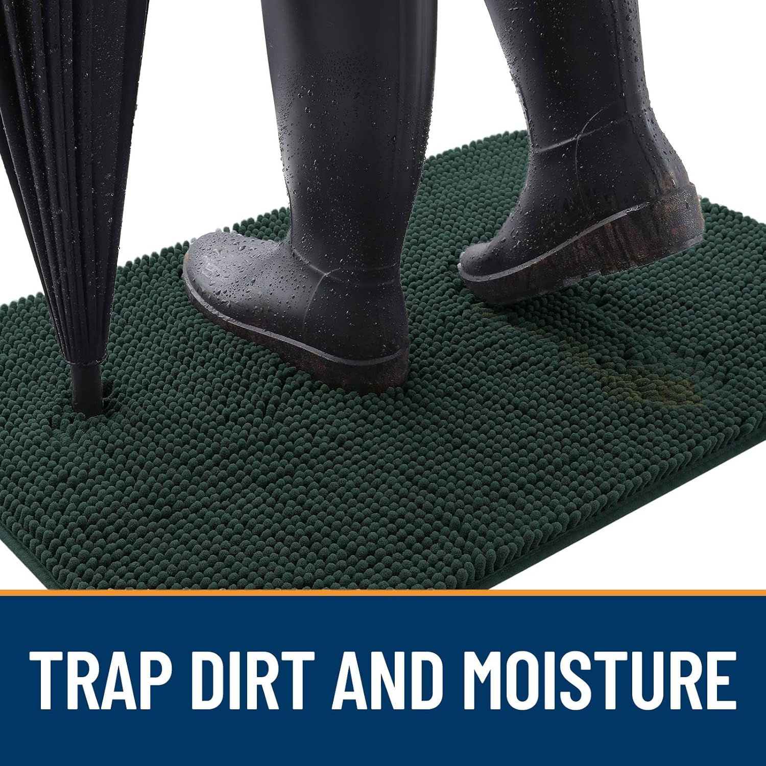 OLANLY Dog Door Mat for Muddy Paws 59x35, Absorbs Moisture and Dirt, Absorbent Non-Slip Washable Doormat, Quick Dry Chenille Mud Mat, Entry Indoor Entryway Carpet for Inside Floor, Blackish Green