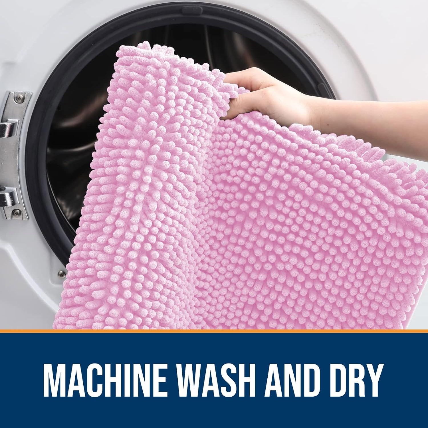 OLANLY Dog Door Mat for Muddy Paws 48x30, Absorbs Moisture and Dirt, Absorbent Non-Slip Washable Doormat, Quick Dry Chenille Mud Mat for Dogs, Entry Indoor Entryway Carpet for Inside Floor, Pink