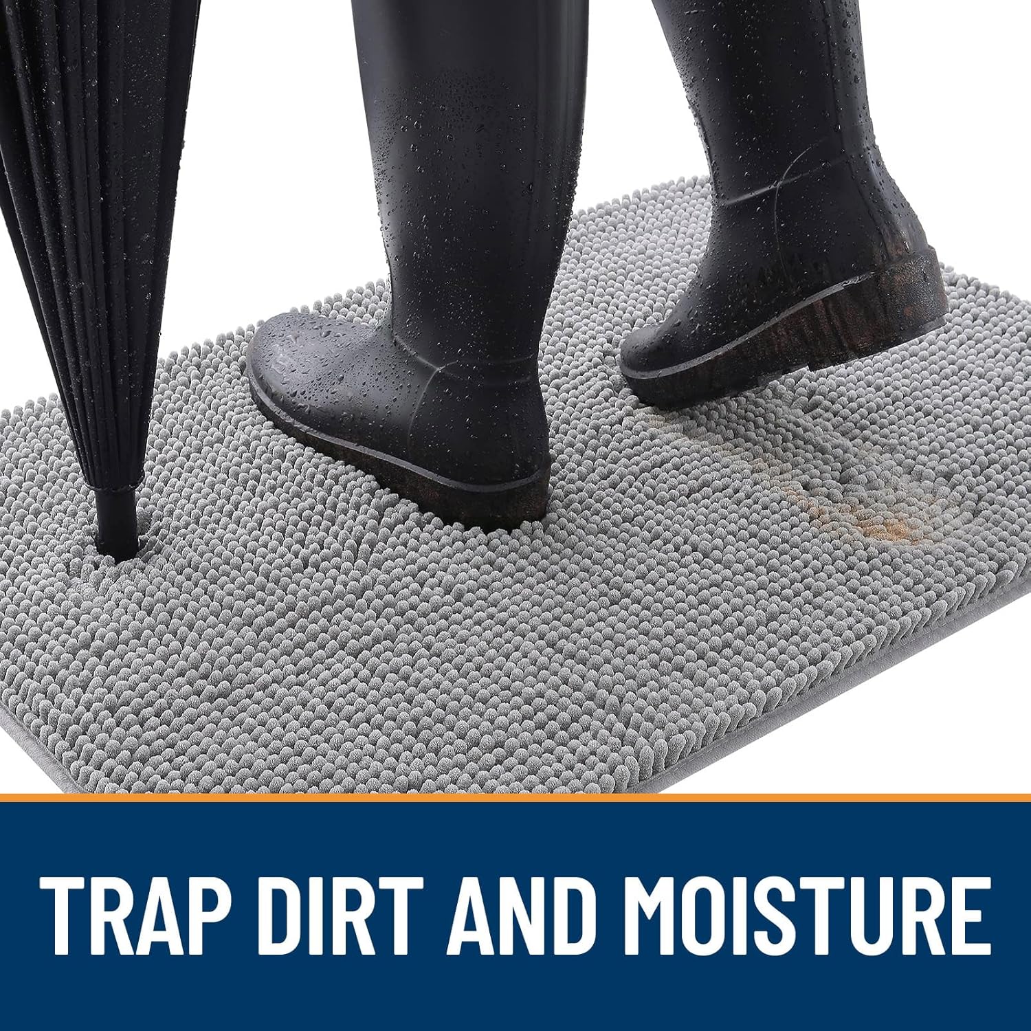 OLANLY Dog Door Mat for Muddy Paws 40x32, Absorbs Moisture and Dirt, Absorbent Non-Slip Washable Doormat, Quick Dry Chenille Mud Mat for Dogs, Entry Indoor Entryway Carpet for Inside Floor, Light Grey