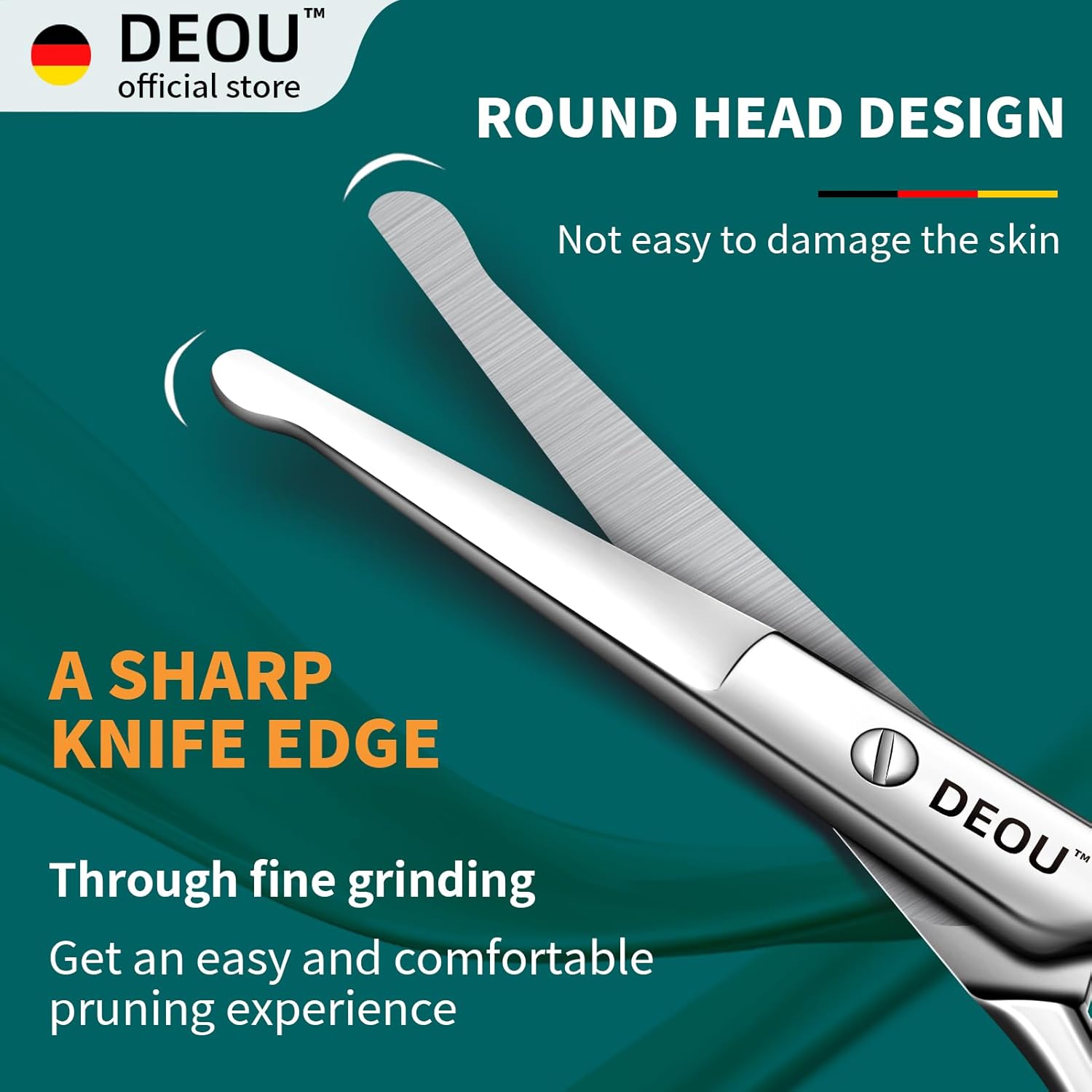 DEOU Silver Stainless Steel Round Nose Safety Scissors - Compact Facial Hair Trimming Tool for Men's Nose, Eyelashes, Eyebrows, Beard & Pet Grooming