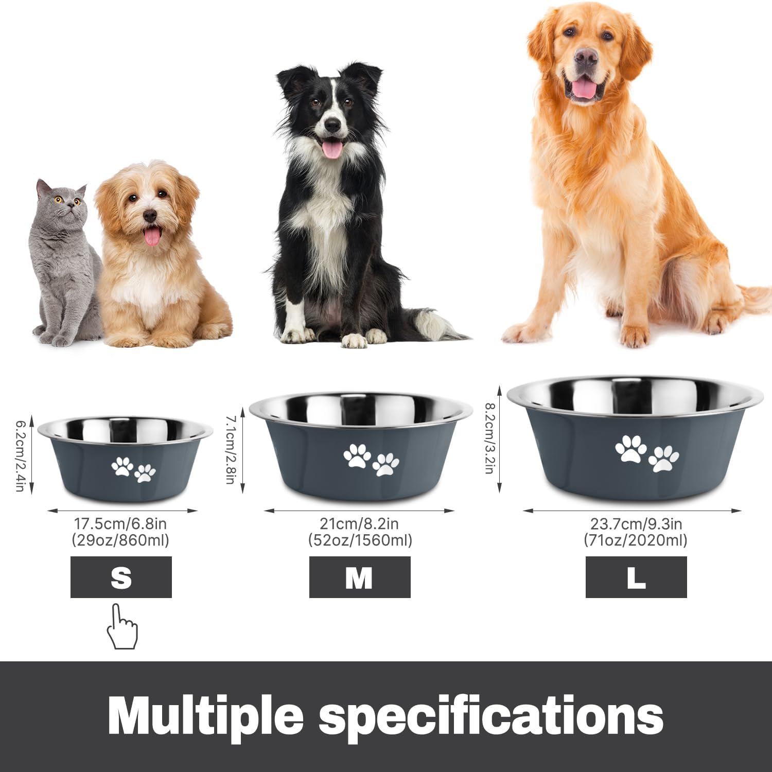 Stainless Steel Dog Bowls, Nonslip Rubber Bottom No Spill Proof Skid Metal Insulated Dog Bowls for Large Medium Small Breed Dogs (Grey, 3.6 Cups/29 OZ)