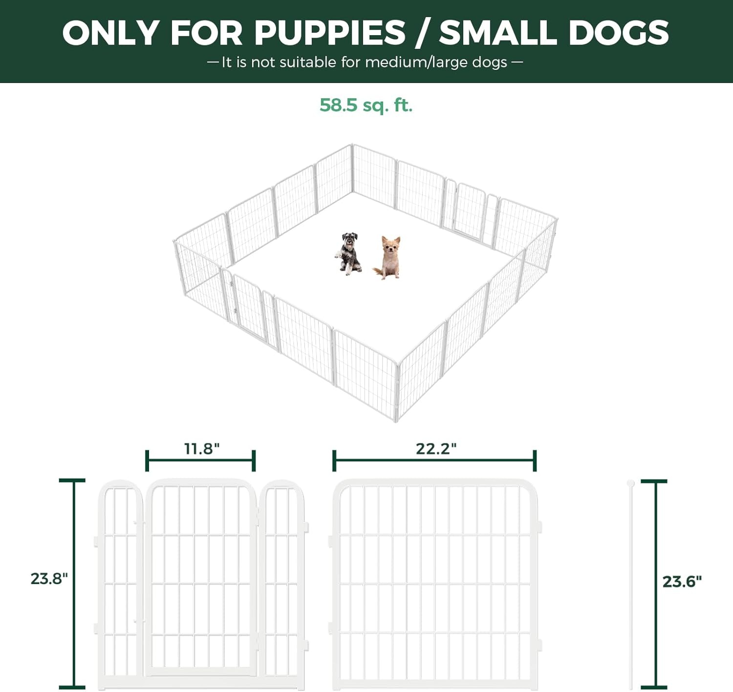 FXW Homeplus Unleashed Indoor Dog Playpen - Stress-Free and Safe Play, Heavy Duty 24 Inch 16 Wire Panels Dog Pen for Puppy and Small Dogs, White│Patented