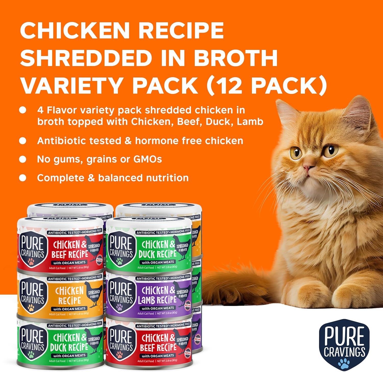 - GOURMET FOOD FOR CATS – Treat your furry companion to the finest dining experience with our premium Shredded Chicken with Organ Meats in Broth, featuring a variety of tantalizing recipes including topped with Chicken, Duck, Beef, or Lamb.