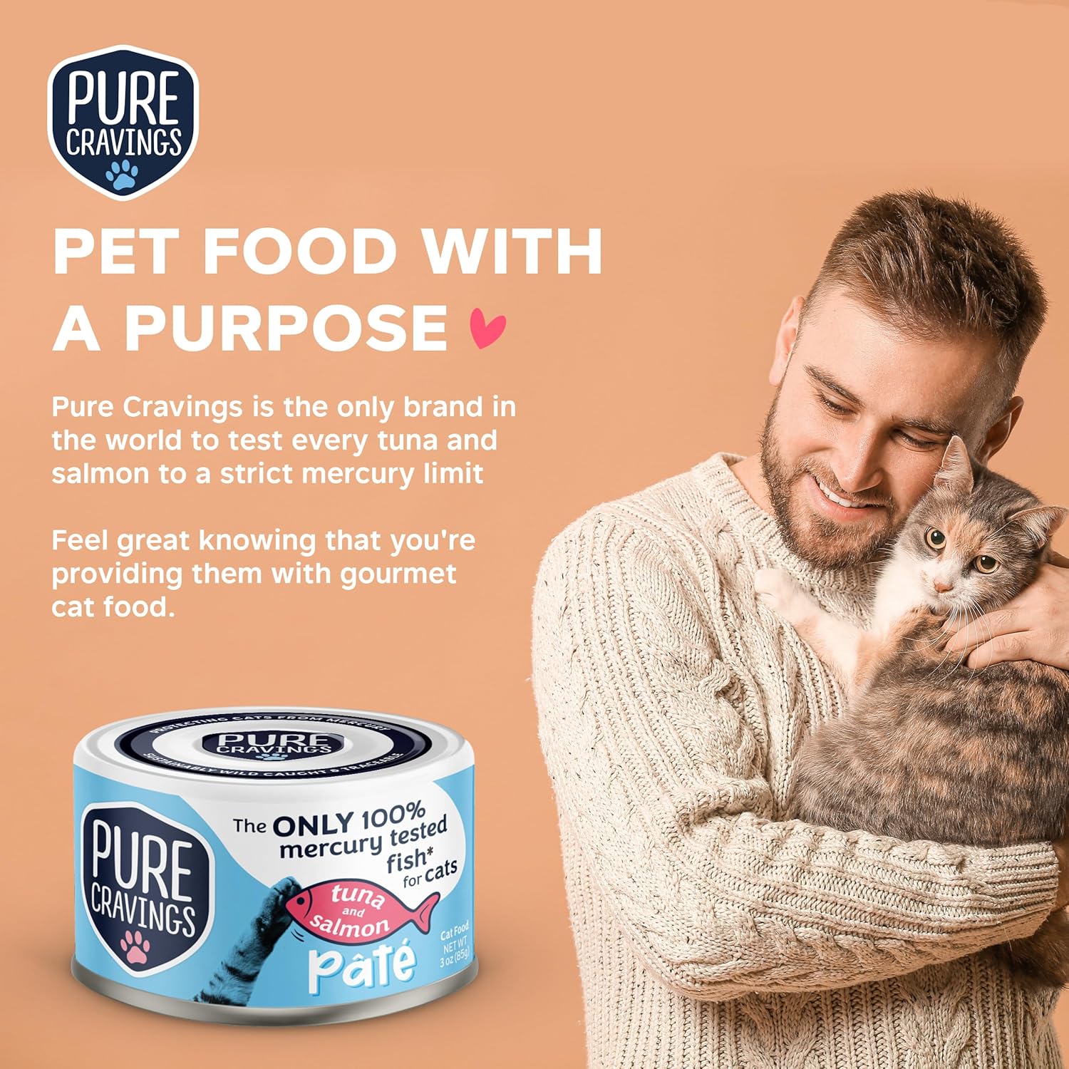 Tuna and Salmon Pate, Canned Wet Cat Food, 100% Mercury-Tested, Moist Can Fish, Grain-Free Protein, Non-GMO, 12 Pack
