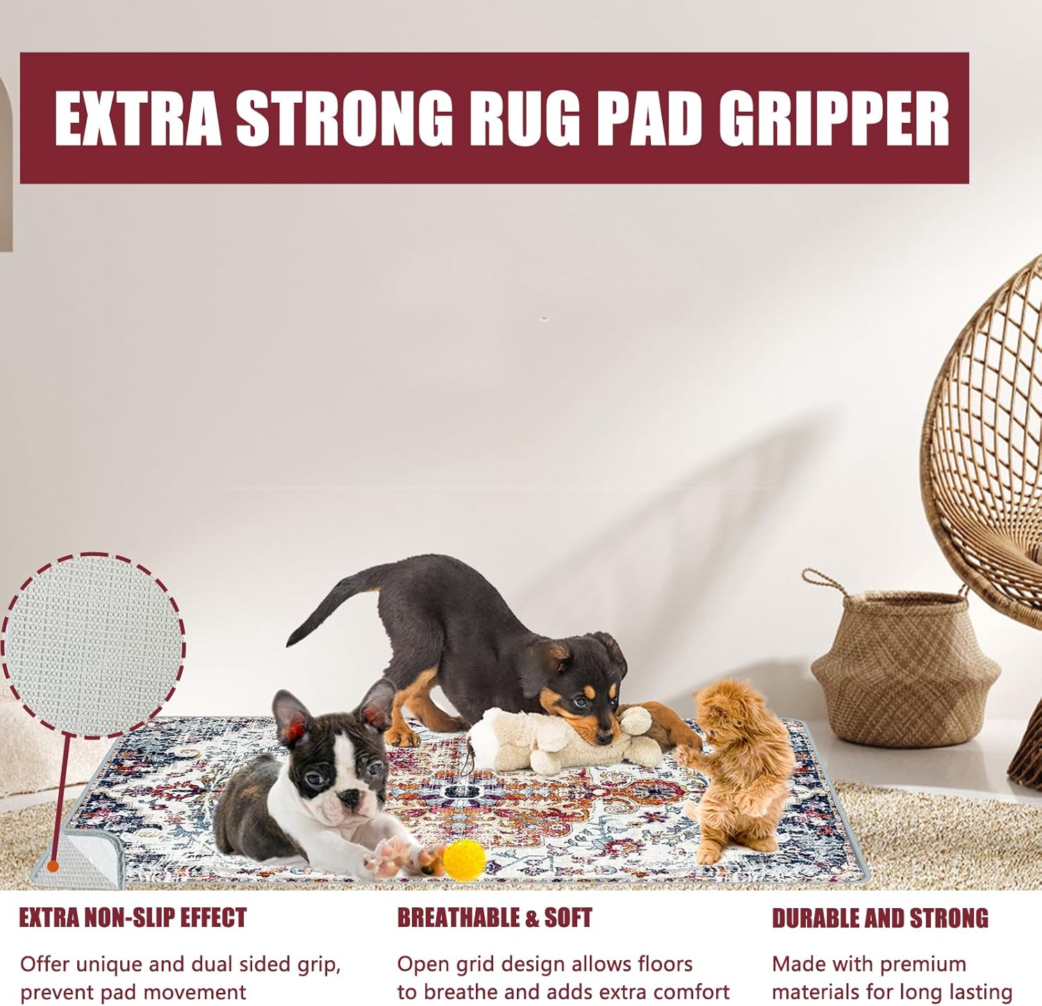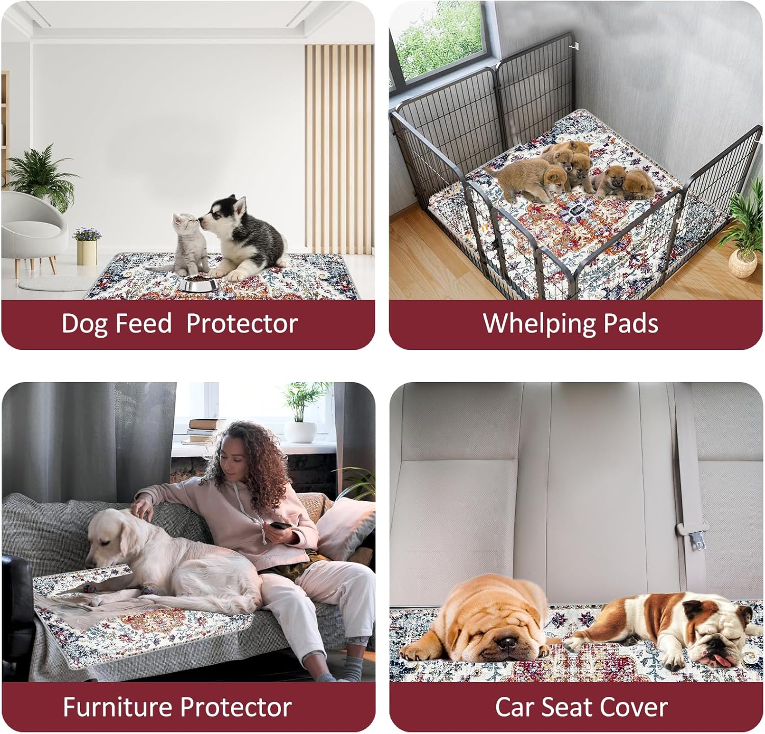 - ๐พใ๐๐ง๐ก๐๐ง๐๐๐ ๐๐จ๐ง-๐๐ฅ๐ข๐ฉ ๐๐๐ซ๐๐จ๐ซ๐ฆ๐๐ง๐๐ใUpgraded with non-slip PVC rug at the bottom, this mat firmly stay on the floor or crate, ensuring the safety of your dog. Not only do puppy reusable pee pads protect against scratches and dirt, they also feature stylish tie-dye and bohemian designs that add a decorative touch to your home.
