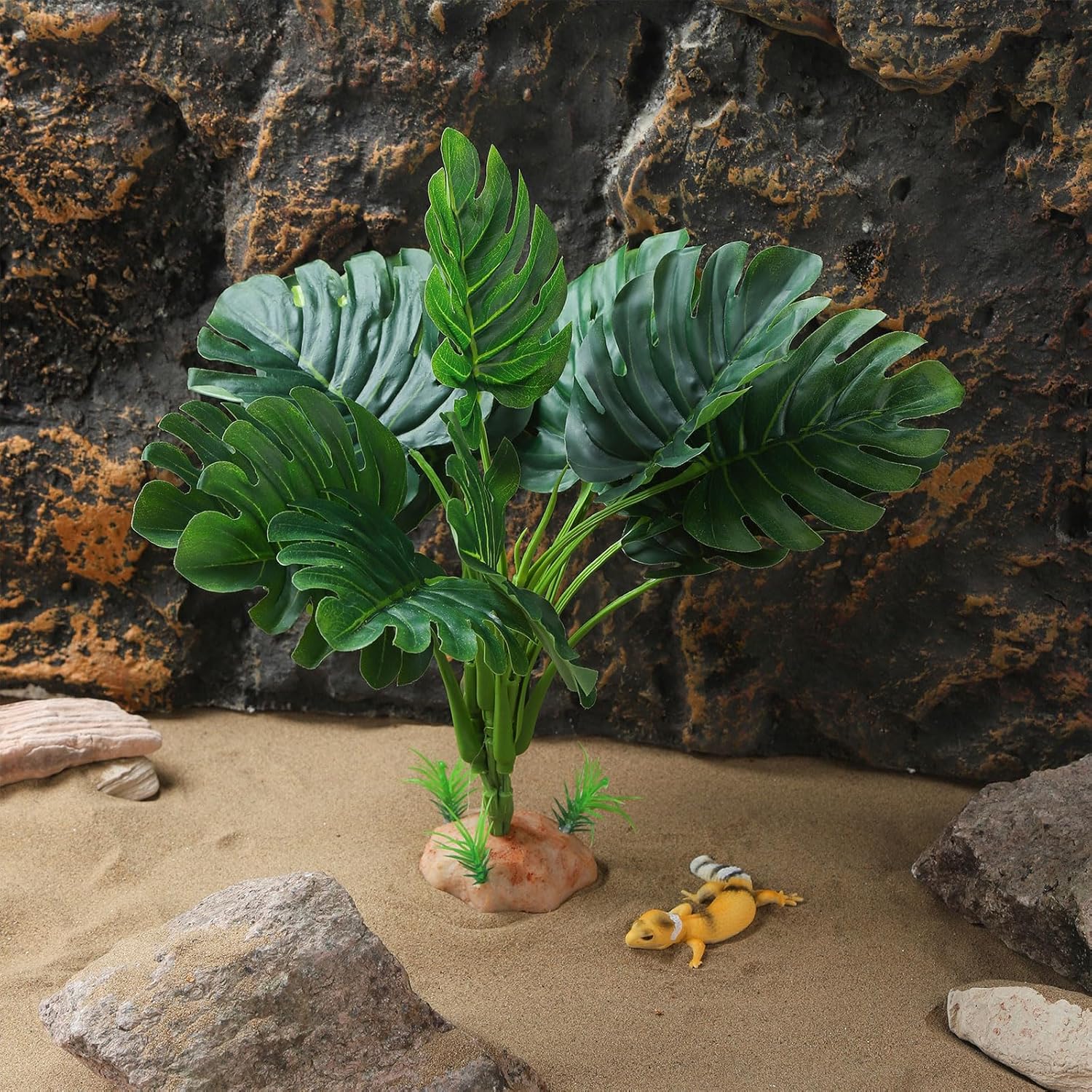 IBWell Reptile Plants - Tortoise Habitat Accessories, Artificial Spider Plant for Gecko, Ball Python, Terrarium Decor - Monstera
