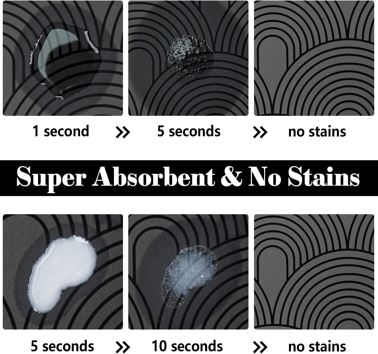- Absorbent & No Stains: The pet food mat made of high quailty material can absorb spilled water in just a few seconds and leaves no stains. The dog bowl mat provide a dry clean eating area for your puppy.
