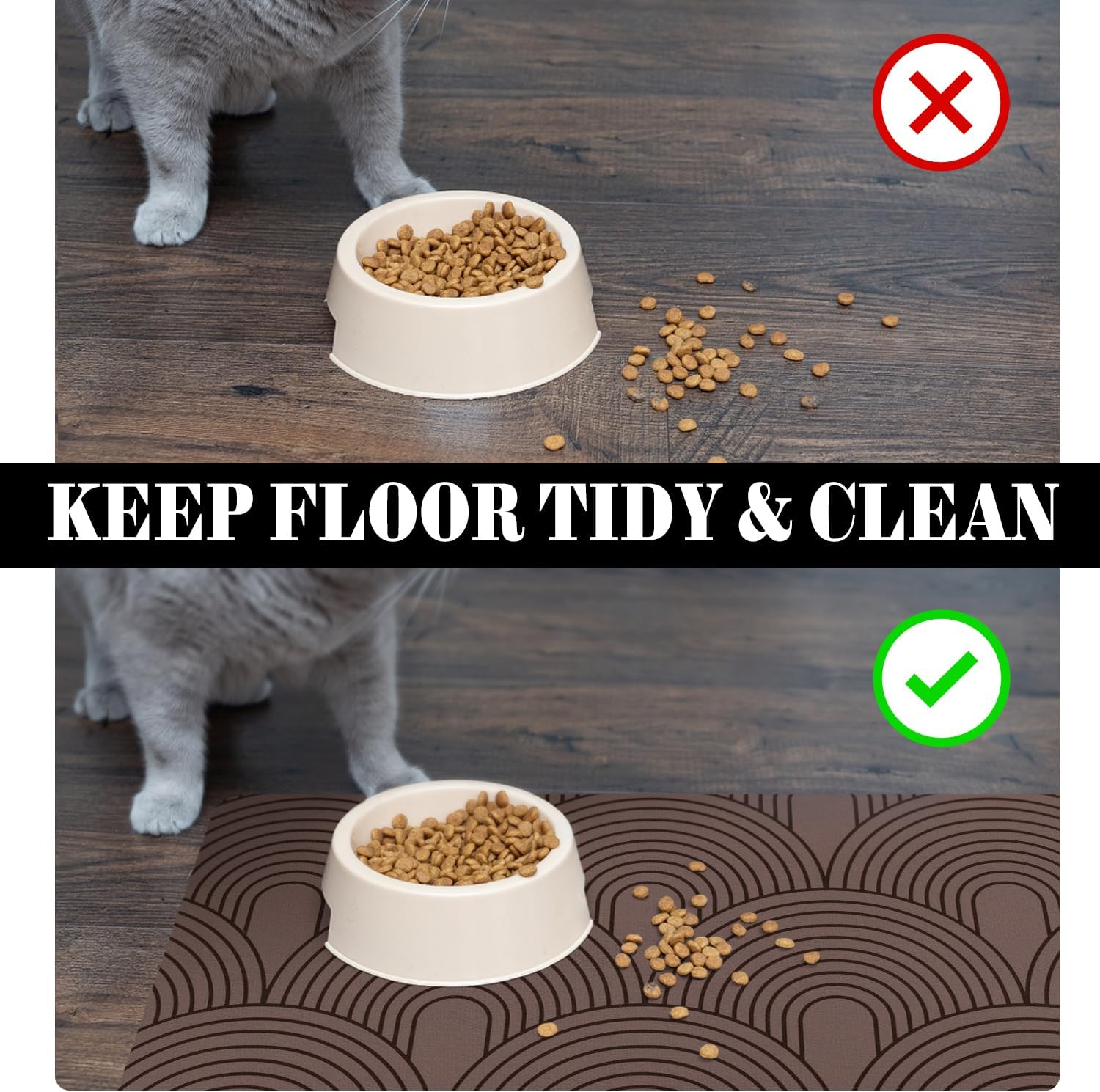 - Versatile Usage: The leak-proof dog feeding mat protect your floor from being corroding by spilled water, it also could be cat litter mat, dog water dispenser mat, pet sleeping mat.