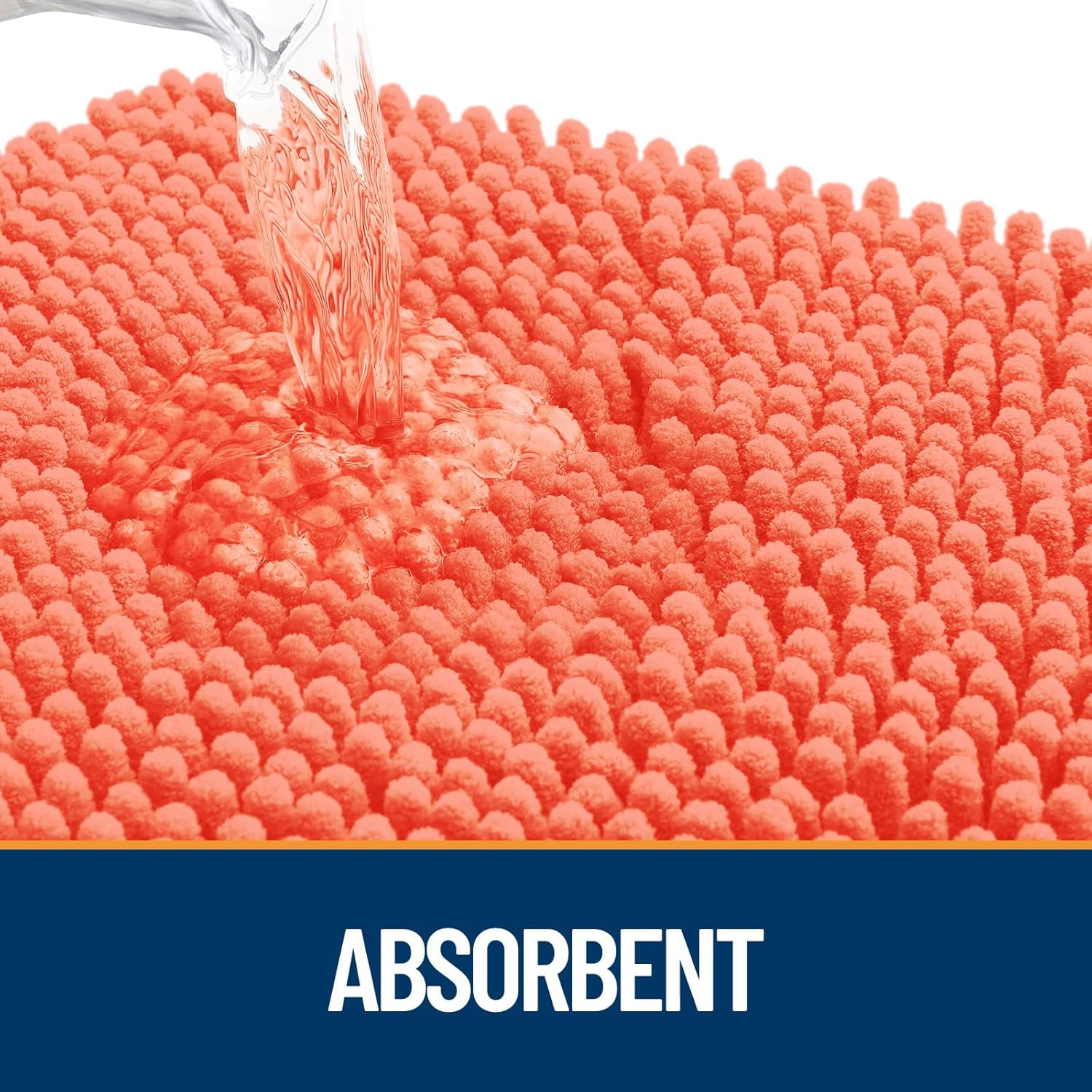 OLANLY Dog Door Mat for Muddy Paws 70x24, Absorbs Moisture and Dirt, Absorbent Non-Slip Washable Doormat, Quick Dry Chenille Mud Mat for Dogs, Entry Indoor Entryway Carpet for Inside Floor, Coral