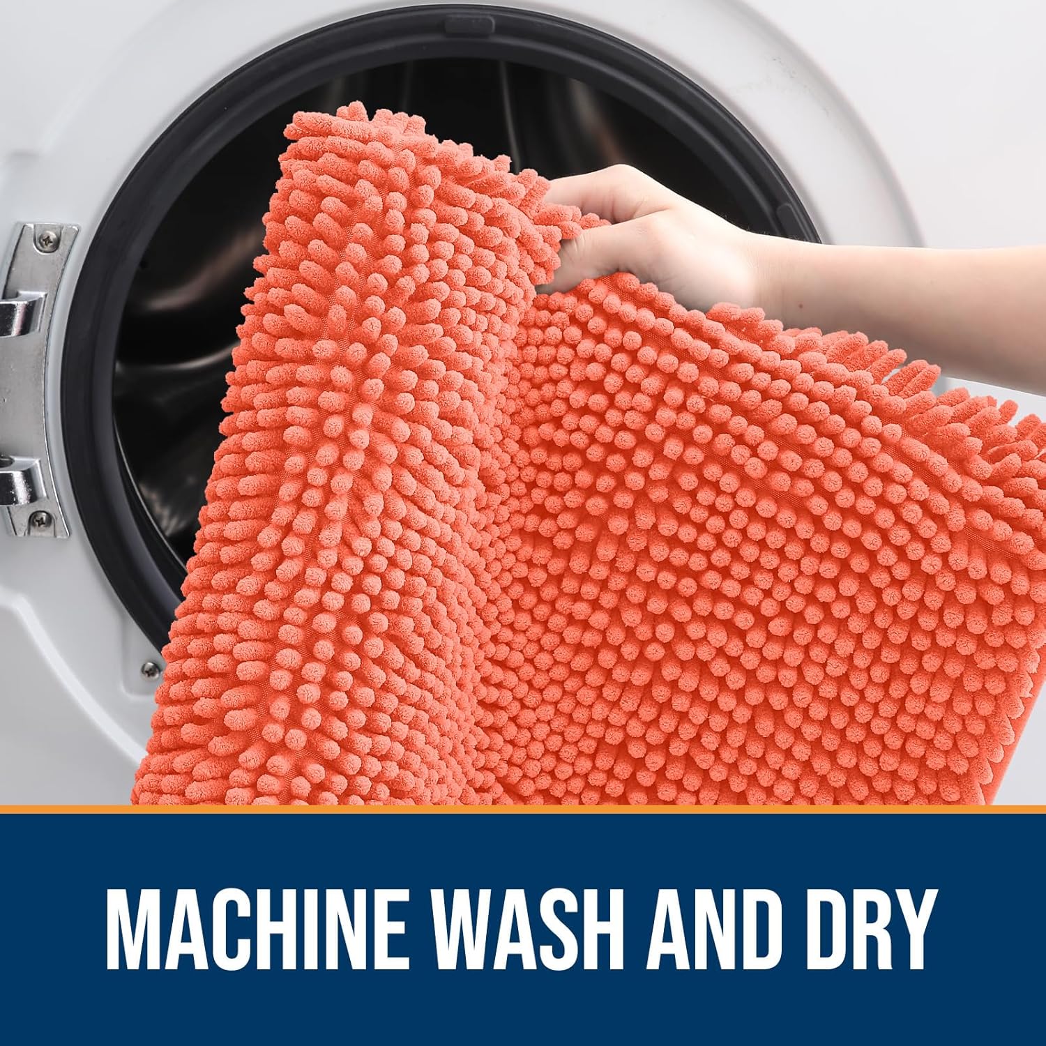 OLANLY Dog Door Mat for Muddy Paws 36x24, Absorbs Moisture and Dirt, Absorbent Non-Slip Washable Doormat, Quick Dry Chenille Mud Mat for Dogs, Entry Indoor Entryway Carpet for Inside Floor, Coral
