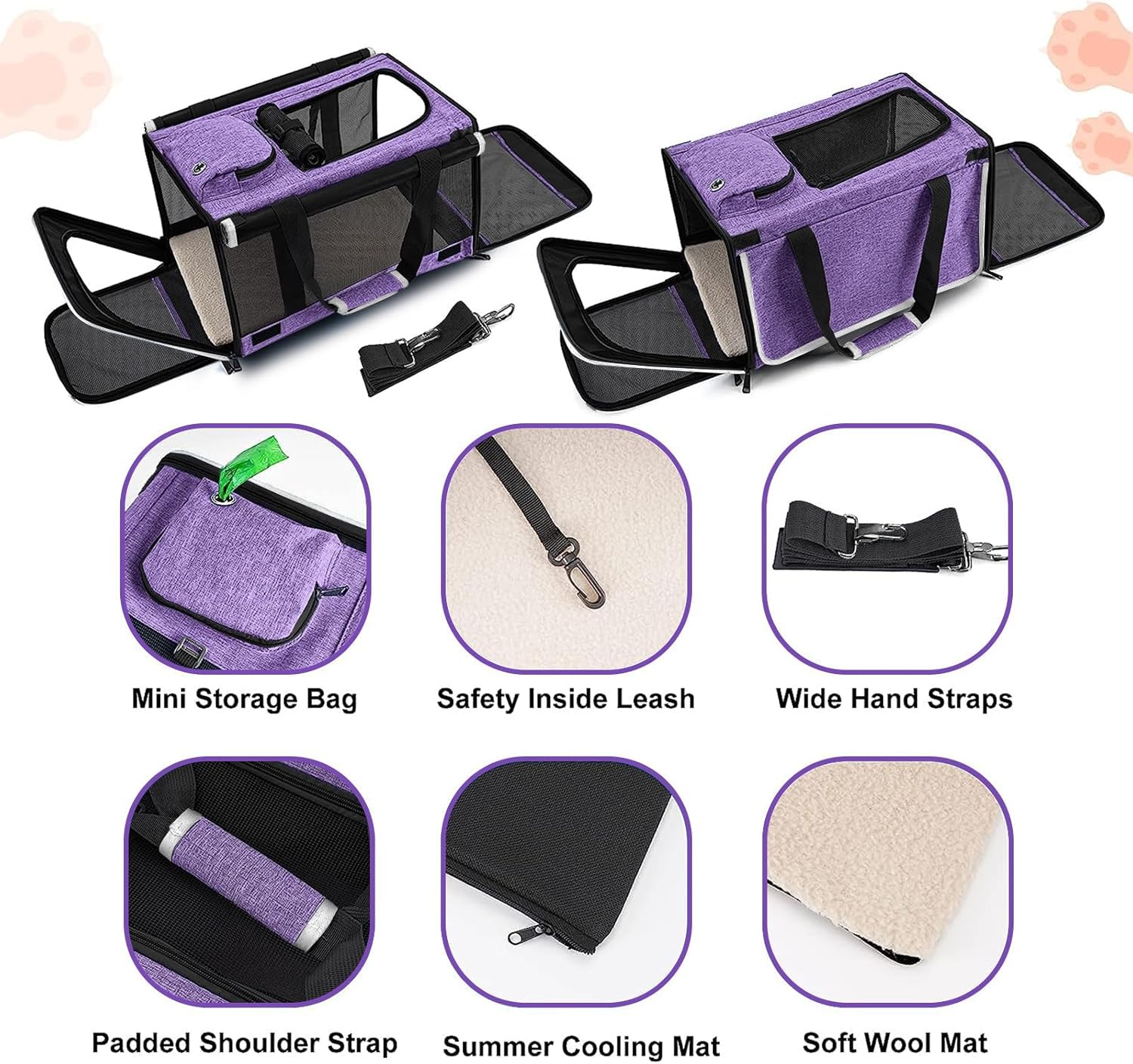 Carrying Bag for Yorkie Dog Travel Kennel Ventilated Softside Pet Carrier Tiny Dog Crate for Teacup Poodle 12lb Large Kitty Transport Cage with Cover Chihuahua Supply Purple