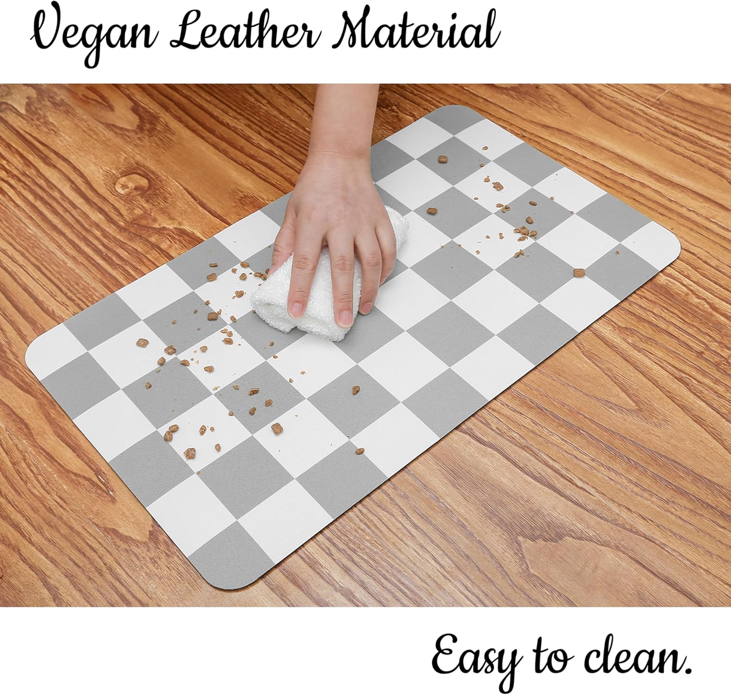 Ralxion Checkered Dog Feeding Mat, Absorbent Mats for Dog Food and Water Bowl, Dispenser, Retro Modern Aesthetic Preppy Grey Checkerboard Pet Placemat for Dogs, Cats, Puppy Accessories, 12" X19”