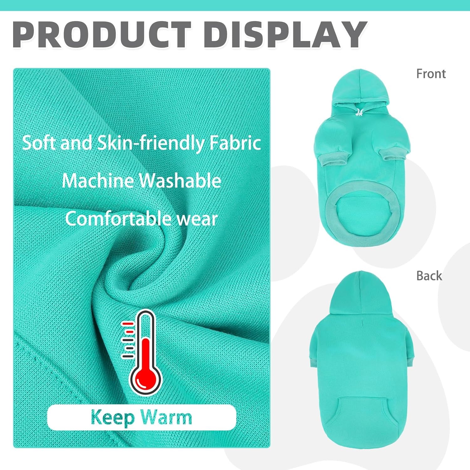 KOOLTAIL Basic Dog Hoodie - Soft & Warm Dog Hoodie Sweater with Leash Hole and Pocket, Dog Winter Coat, Cold Weather Clothes Sweatshirt for Small Medium Large Dogs Puppy Cat Boys Girls Lake Blue XS