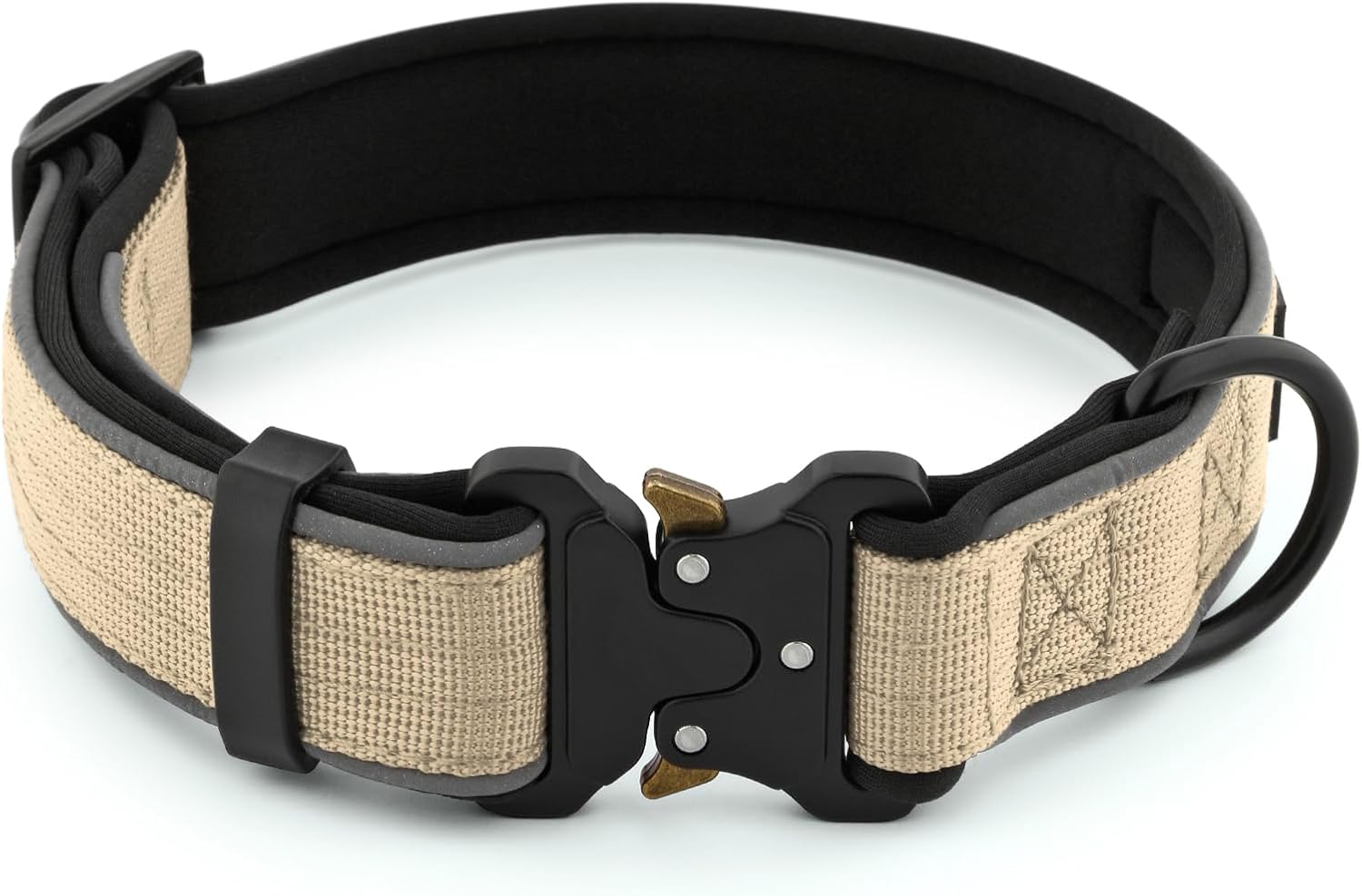 Plutus Pet Tactical Dog Collar, Reflective, Adjustable Heavy Duty Dog Collar, Soft Padded and Comfortable, for Small Medium and Large Dogs (Beige, XL)