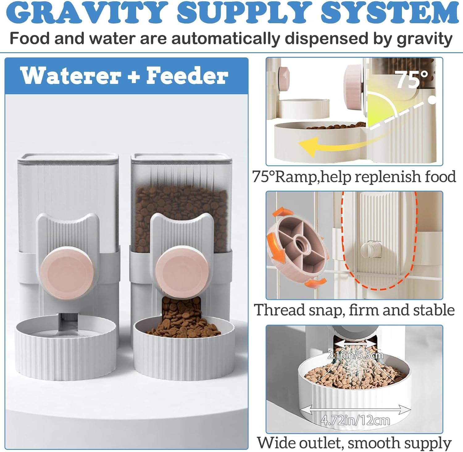 - Auto-Replenishment Design: This automatic bunny feeder set uses a natural gravity supply system to continuously provide fresh water and plenty of food, effectively reducing the frequency of food and water refills