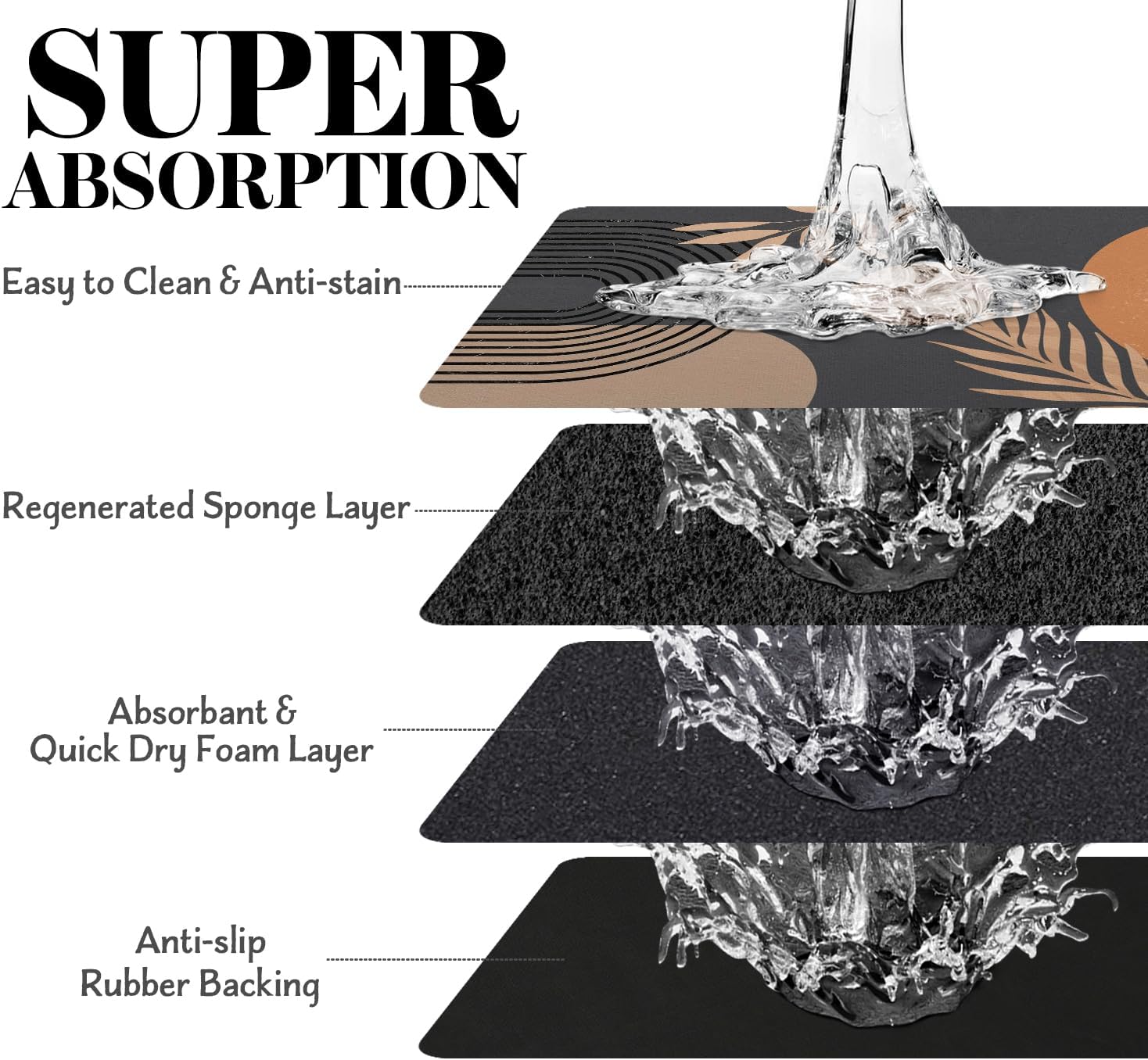 - Super Absorption: The dog mat for water bowl can absorb spilled water without leaving traces and dry quick, avoid wetting pet paws even for messy drinkers. And it does not attract pet hair like traditional silicone dog bowl mat.