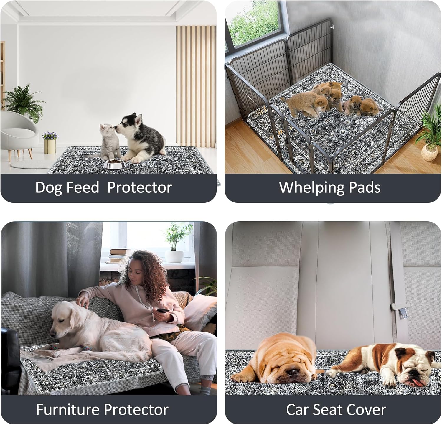 Washable Pee Pads for Dogs, (2 Pack, 36"x42") Upgrade Reusable Puppy Pads with Non-Slip Rug Pad, Super Thickening Absorbent Leakproof Dog Traning Pads Whelping Pad for Dogs, Doggie(Black)