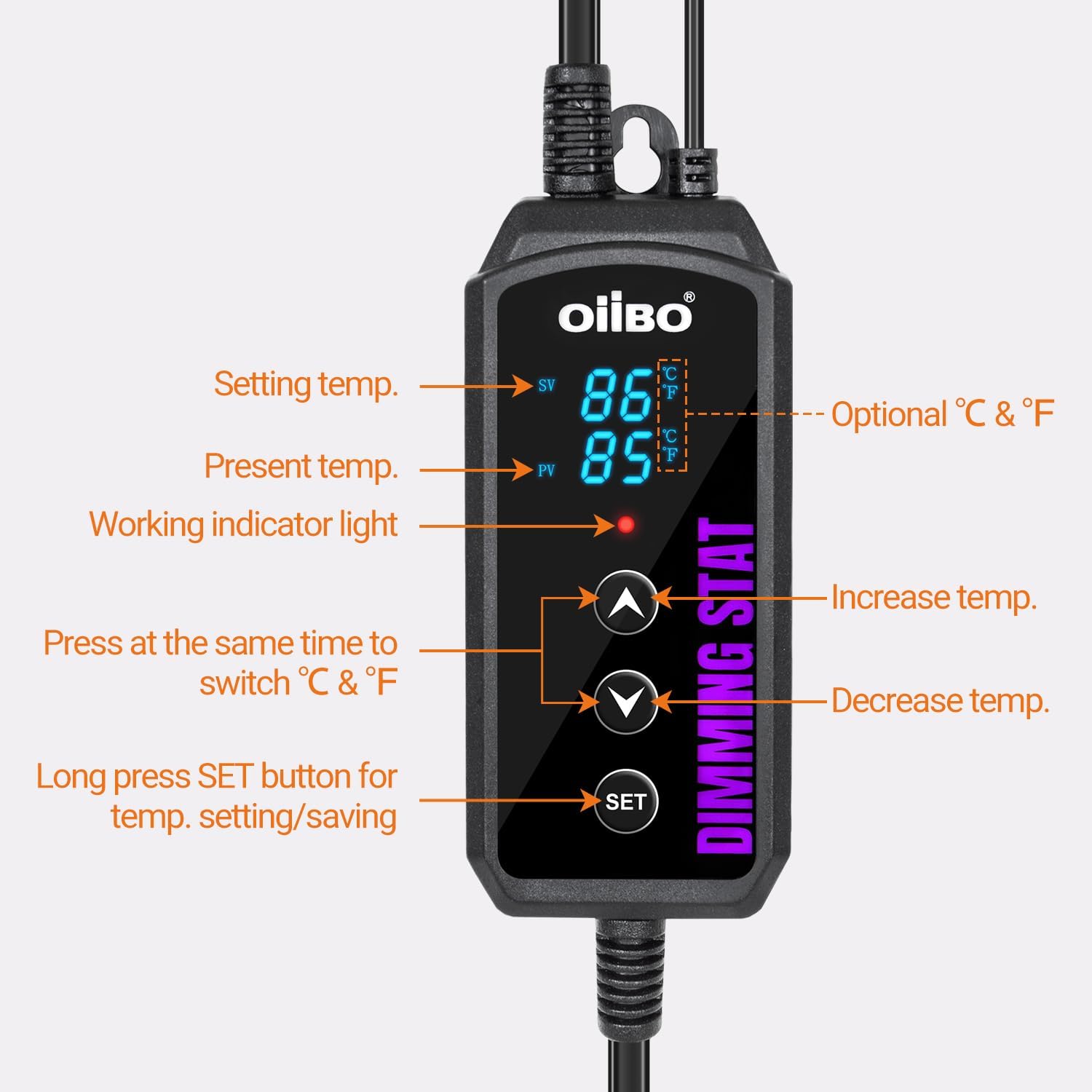 - 【Temperature Control Mode】 OiiBO reptile thermostat offers temperature range of 41℉-149℉ and utilizes PID heating for more stable and efficient temperature regulation, ensuring the optimal environmental temperature required for reptiles. (DO NOT use it with sunlamp)