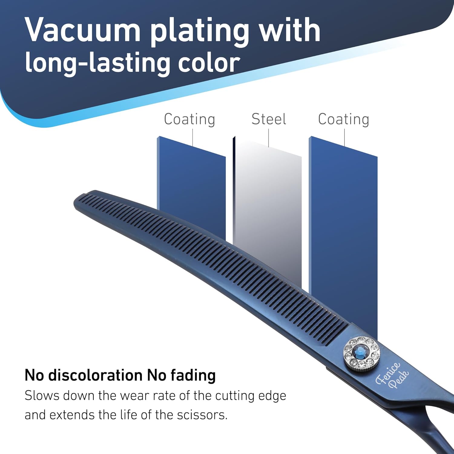 Fenice Peak Professional Dog Grooming Scissors Pet Curved Thinning Shears 7.0'' Extremely Sharp Blades 440C Steel Thinning Scissors Durable Smooth Motion&Fine Cut for Dogs and Cats