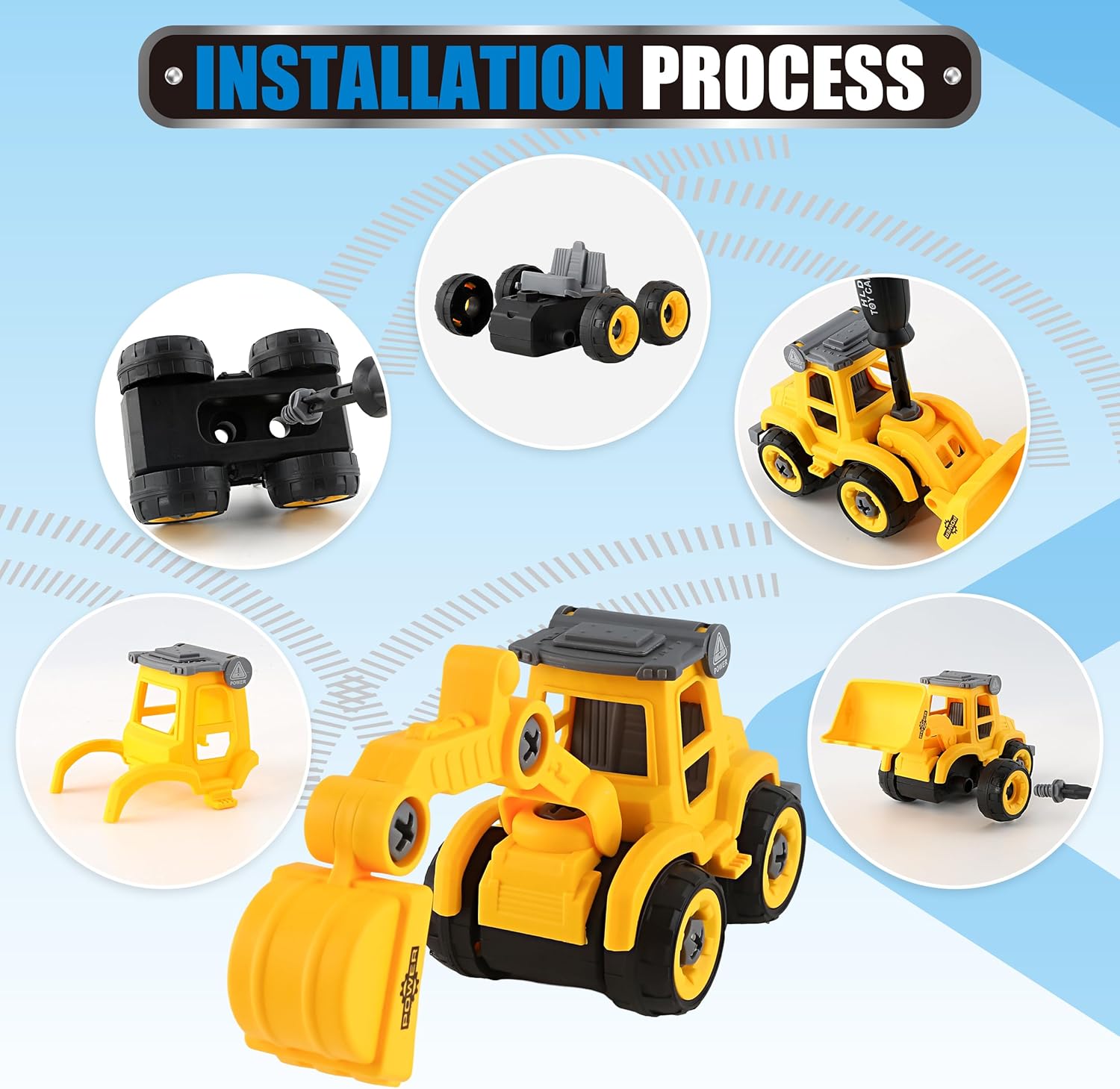 - Interactive Buildable Vehicle Fleet:Assemble 4 construction vehicles (excavator/dump truck/mixer/bulldozer) featuring movable parts and a conveyor belt. Develops logical sequencing and finger strength through hands-on mechanical play.