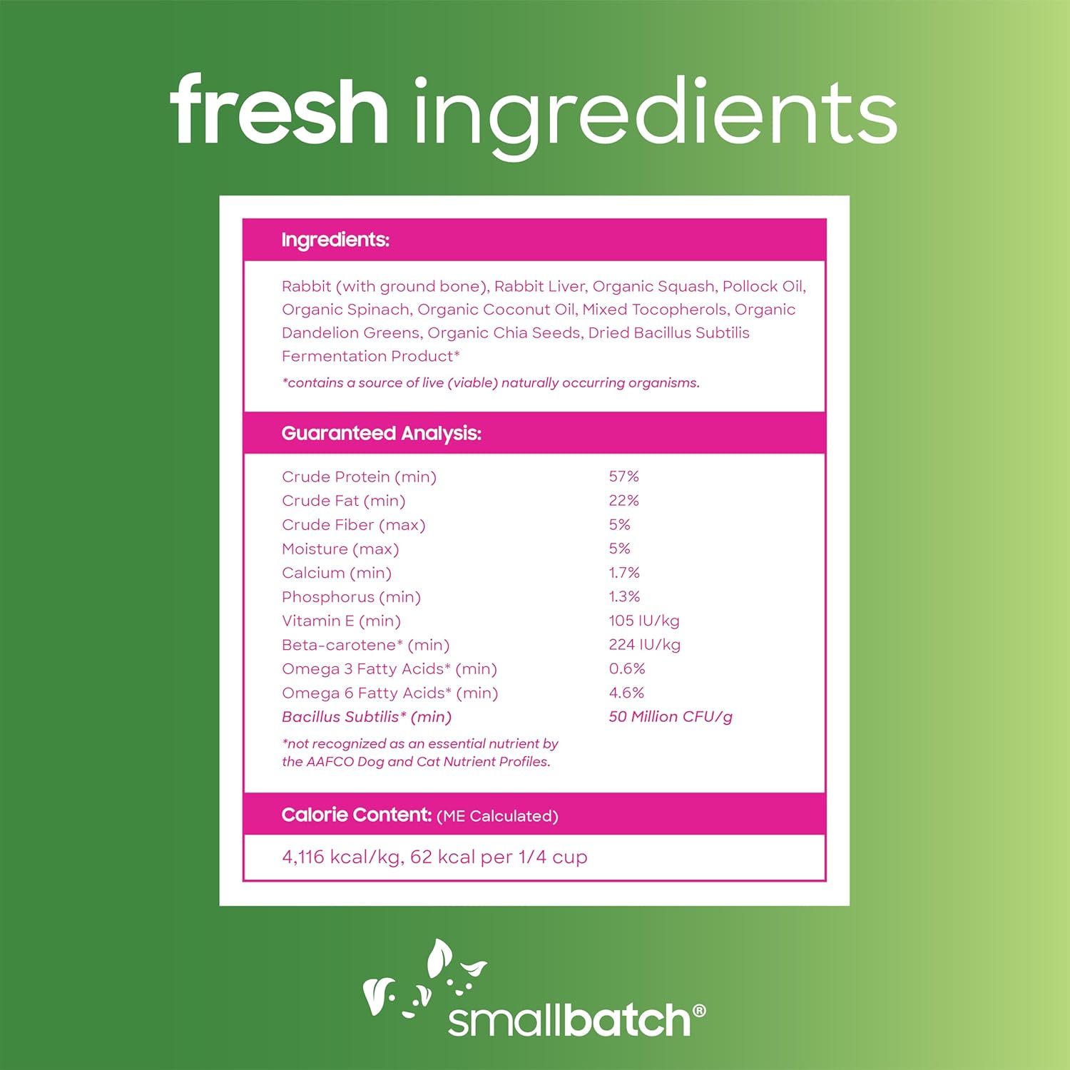Smallbatch Freeze Dried Dog Treats, Superfood Food Topper Rabbit Bites for Dogs & Cats, Probiotics, Organic Ingredients, High Protein, Grain Free Healthy Treat & Food Topper, Made in the USA, 7 oz Bag