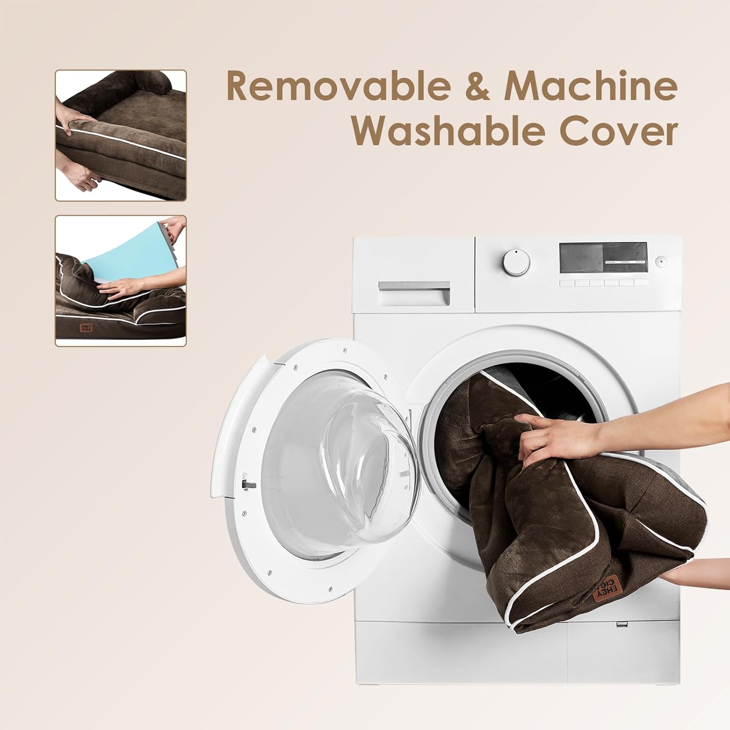 - MACHINE WASH and CARE INSTRUCTION: Our washable dog bed with removable cover has zipper closure and can be easily cleaned. Just get the foam off and it can be machine washed directly with the sides. Please note that the inner foam is not washable. After receiving it, leave it for 24-48h for rebound.