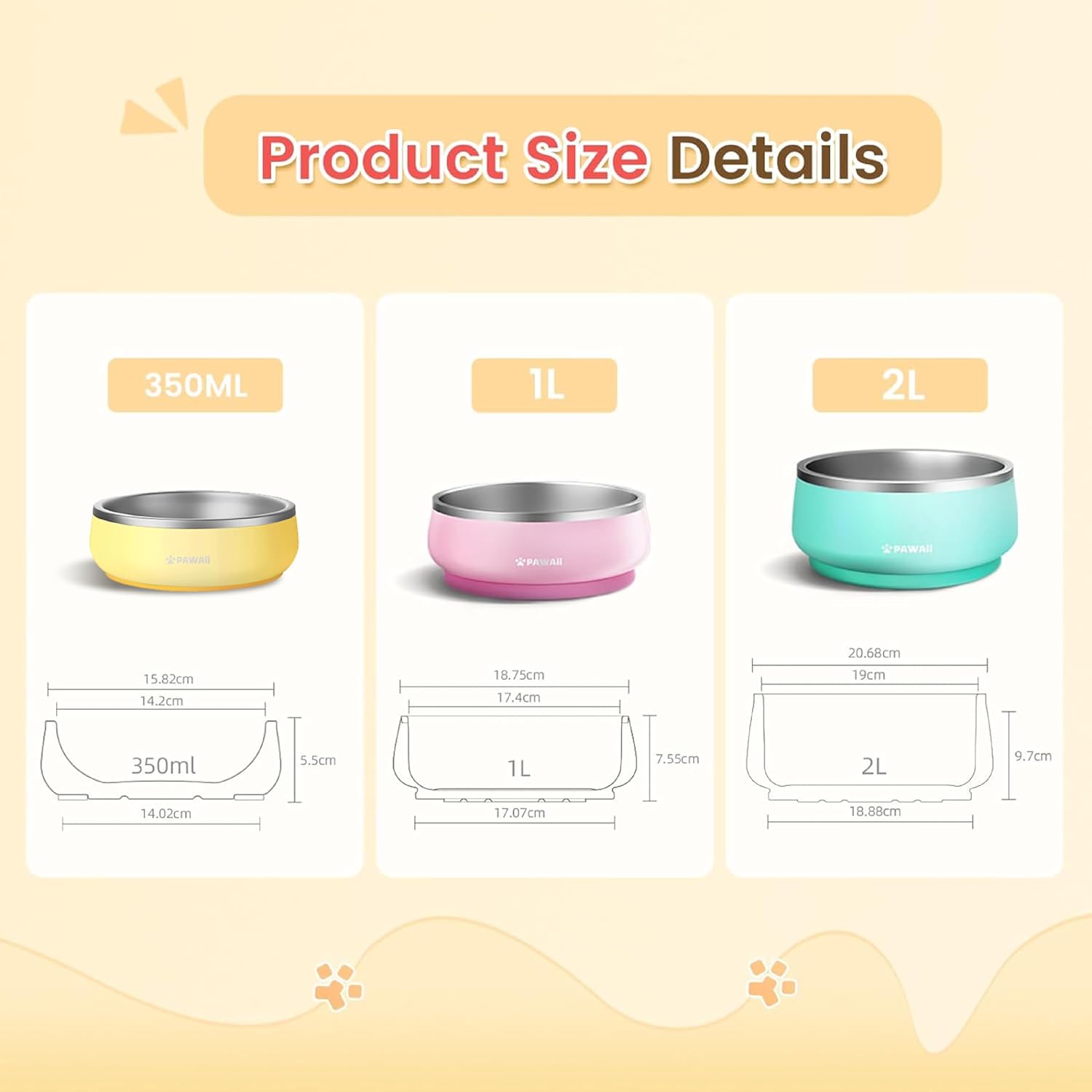- ๐ ๐๐ซ๐๐๐ณ๐ ๐ญ๐จ ๐๐ฅ๐๐๐ง: Pawaii stainless steel dog bowl repels oil, does not hide dirt, and can be cleaned by simple flushing. Note that unlike the 34 oz. and 68 oz. bowls, the non-slip mat is not removable and is therefore not dishwasher or microwave safe.