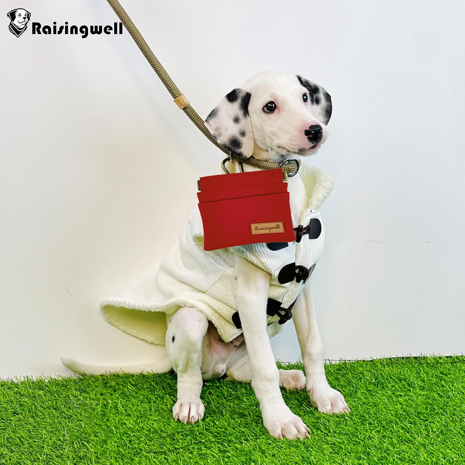 - Durable Material: Raisingwell's dog treat training pouch is crafted from durable, washable, non-toxic vegan fabric, made of pure cotton. In particular, the waterproof lining addresses the issue of difficult cleaning inside the training pouch.