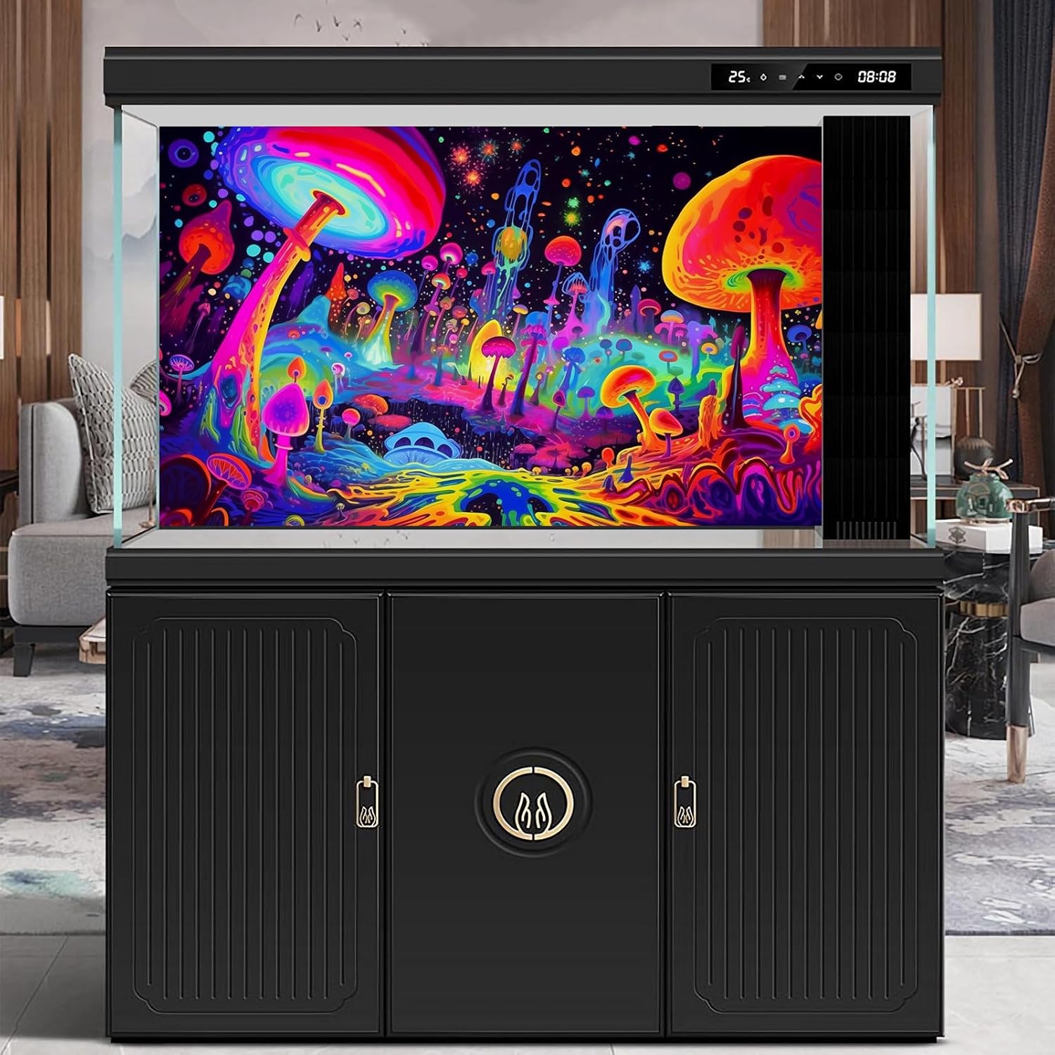 Fantasy Mushrooms Aquarium Background Abstract Mysterious Mushroom Landscape Terrarium Background Amazing Rainbow Mushrooms Theme Fish Tank Backdrop Poster Wallpaper Decorations Vinyl 48x20in