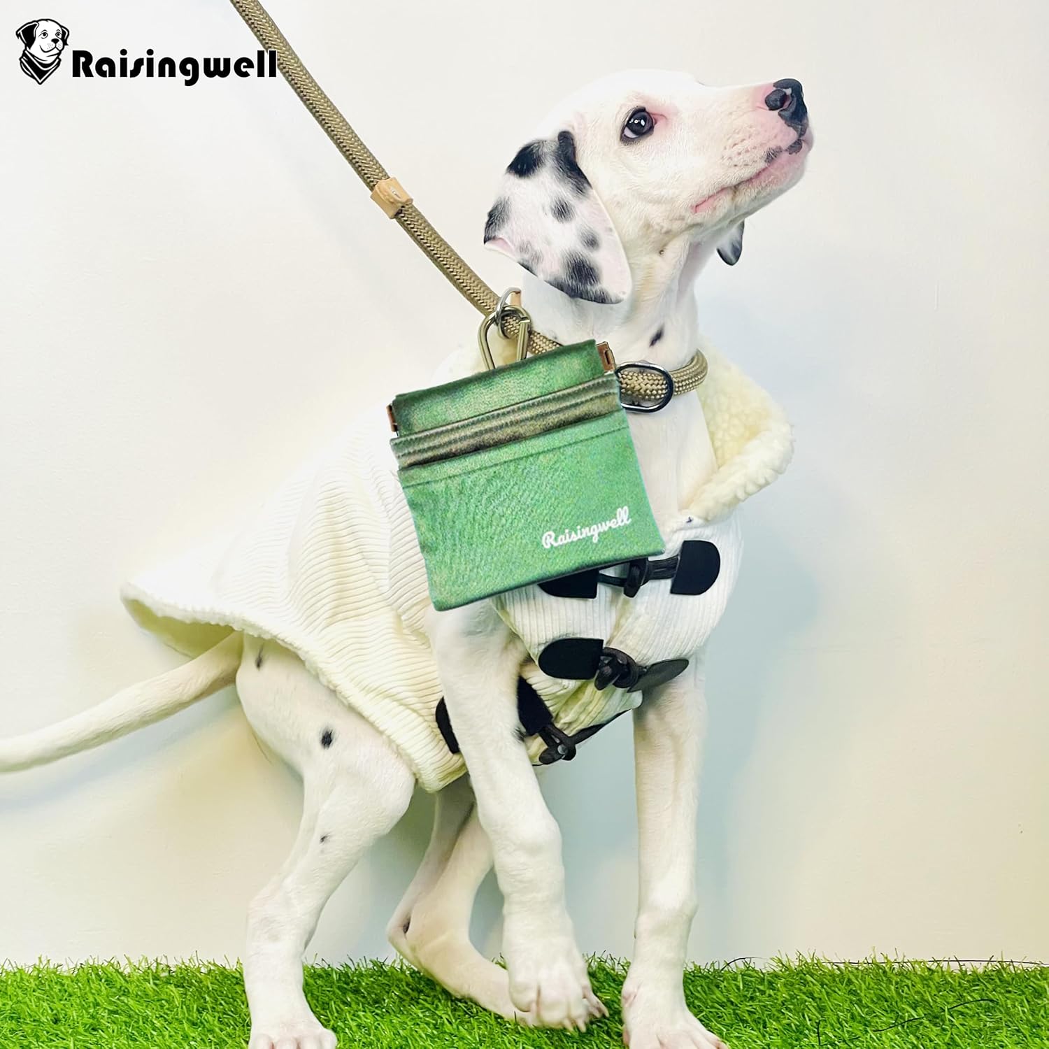 • Durable Tech Material: Raisingwell's dog treat training pouch is crafted from durable, washable, non-toxic vegan fabric, utilizing nano photonic crystal technology. In particular, the waterproof lining addresses the issue of difficult cleaning inside the training pouch.