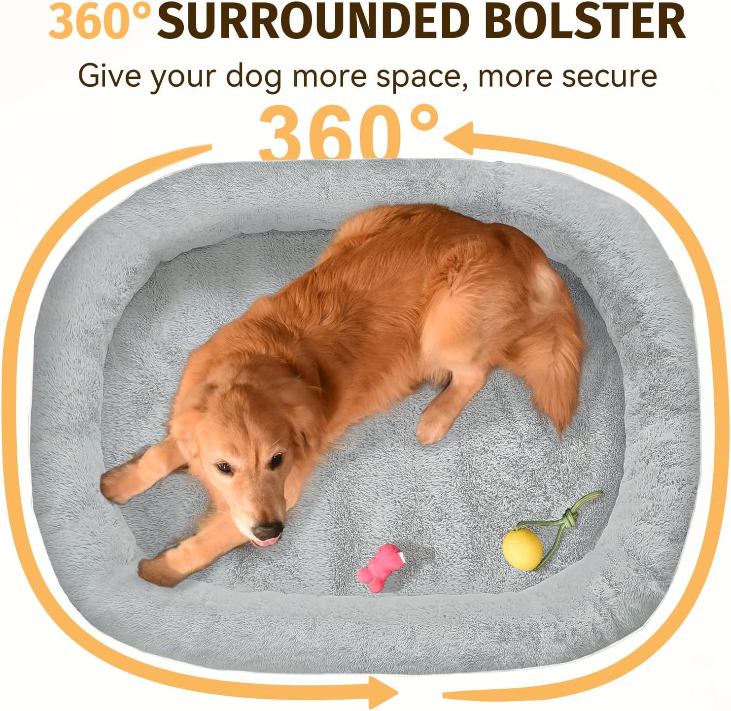 - 360° Surrounded Support: This 360° full circle design creates a secure sleeping environment, making dog bed xl ideal for dogs who prefer a more enclosed space; The bolsters also served as a headrest that provides additional support for the neck and back; Whether your dog likes to curl up or stretch out, this orthopedic dog bed accommodates all sleeping position