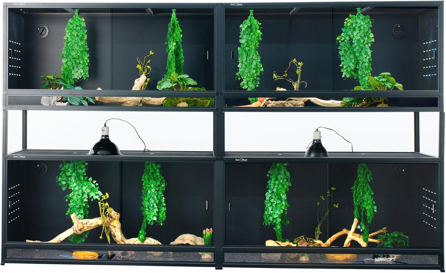 Reptile Enclosure 4 Packs, 48"x24"x24" Stackable Space Efficient Reptile Tank for Bearded Dragon and Ball Python, Expandable Snake Terrarium with Front Opening Tempered Glass Door