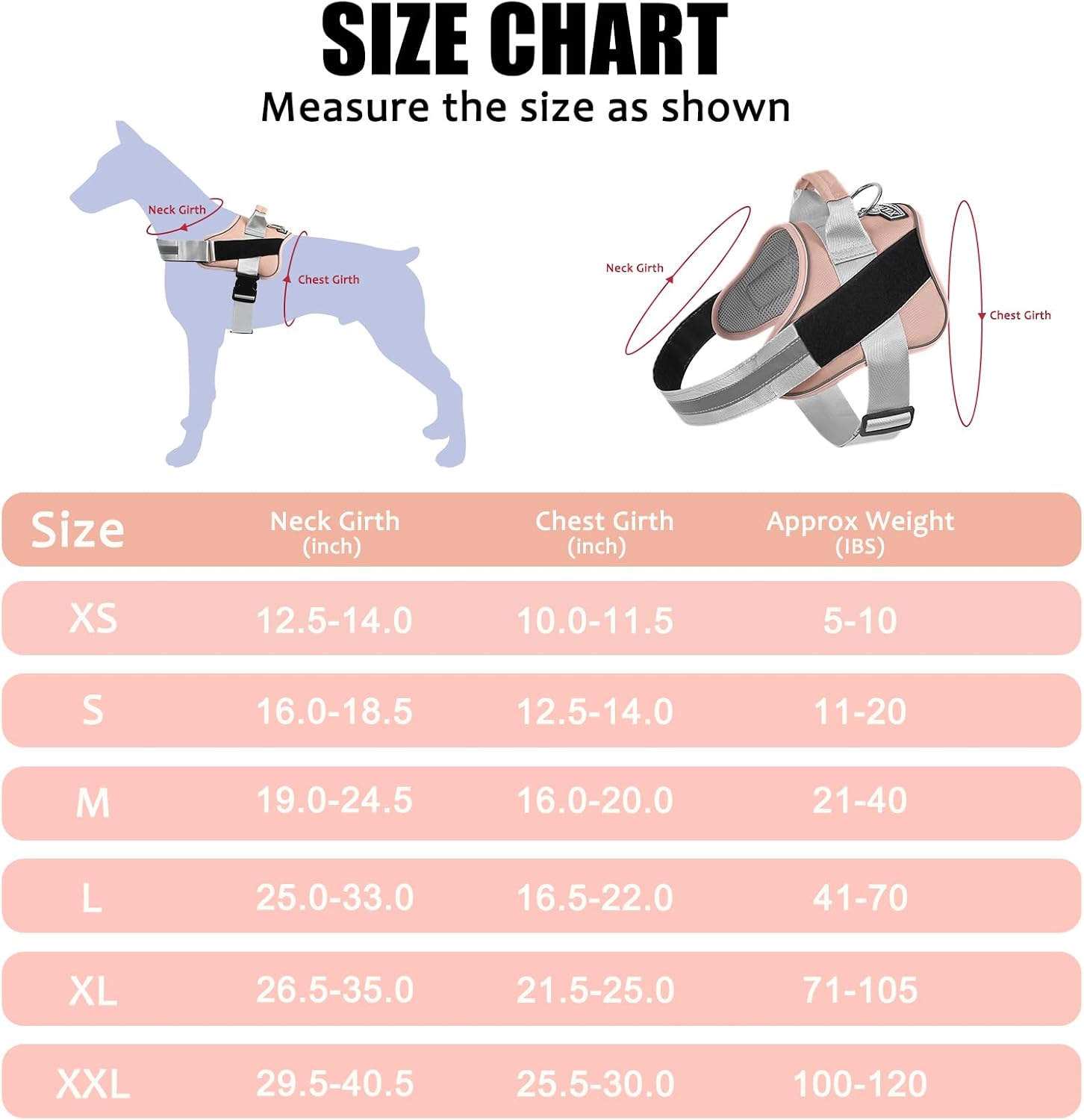 - EXTRA SMALL DOG HARNESS: ★Approx Weight: 5-10 lbs. Neck Girth: 10"-11.5", Chest Girth: 12.5"-17"★. It perfect for extra small dogs and pups, like Yorkie, Chihuahua, Pug, Maltese dog, etc.