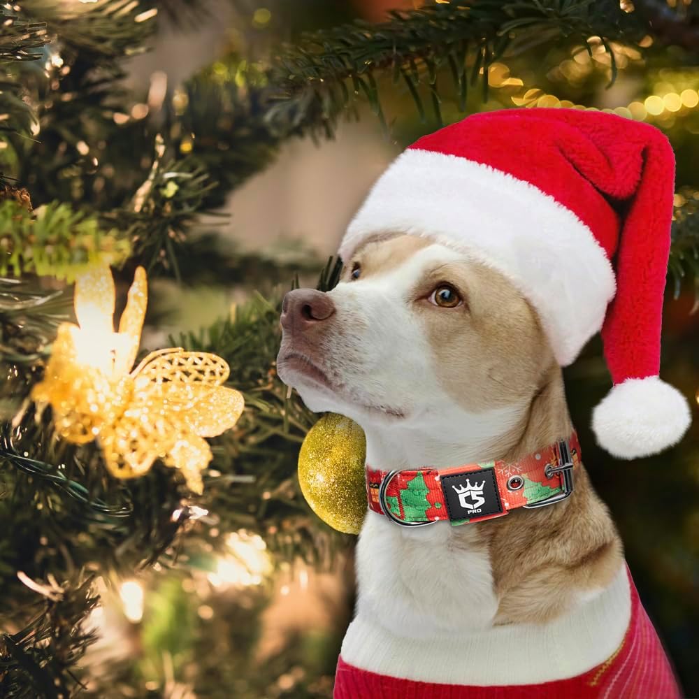 TSPRO Tactical Dog Collar 1.5 Inch Wide Thick Dog Collars with Heavy Duty Metal Buckle, Durable, Strong, Adjustable for Medium to Large Dogs (Christmas Green M)