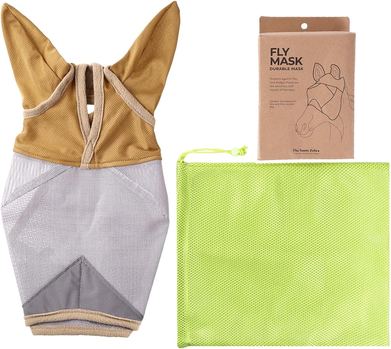 Fly Masks for Horses, 70% Uv-Block, Breathable Fly Mask for Equines, Durable, Comfortable Fit for All-Day Protection, Horse Size (Horse Fly Mask, with Ears)