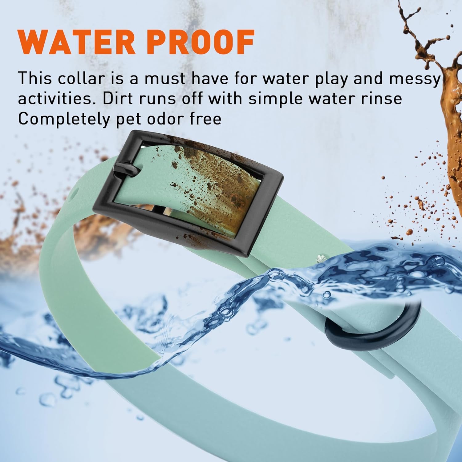 - Free Your Dog to romp in puddles and retrieve from lakes with the Dogline Biothane Waterproof Dog Collar. This water-repellent collar stays dry and odor-free, without shrinking or losing flexibility.