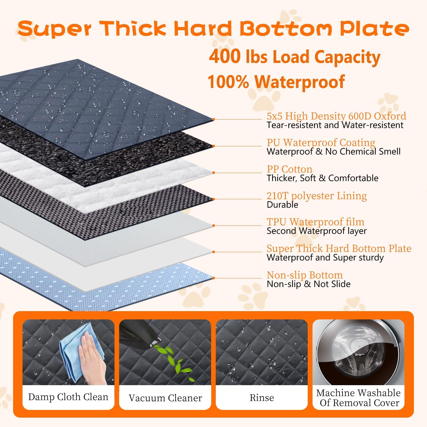 - Waterproof & Odorless Materials - Paw Jamboree hard bottom car seat cover for dogs is made of odorless 7 layers of fabric and 30D foam and a plactic hard board, the dog seat extender for back seat without unpleasant odor is friendly to pets and family members in the car space. Meanwhile, our truck pet cover for backseat is with water-resistant coating and TPU film material as waterproof layers which help to prevent leaks and messes. Also Paw Jamboree truck seat cover for dogs are unique quilted without any holes.