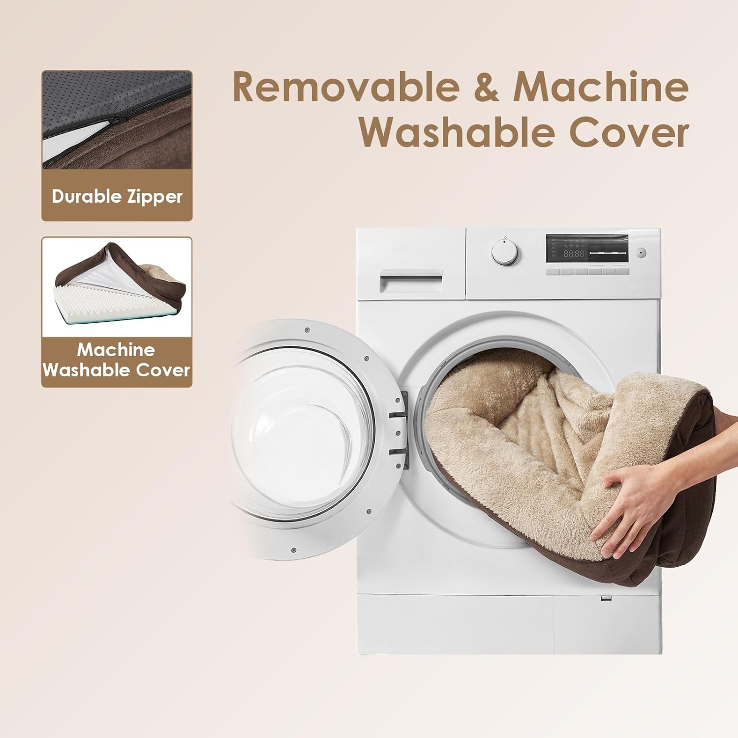- CARE GUIDELINES: This pet bed retreat boasts a removable, machine-washable cover with a convenient zipper. Simply extract the foam core and launder the cover. Kindly remember, the foam insert is not designed for washing. Postunpacking, allow 24-48 hours for the bed to fully inflate.