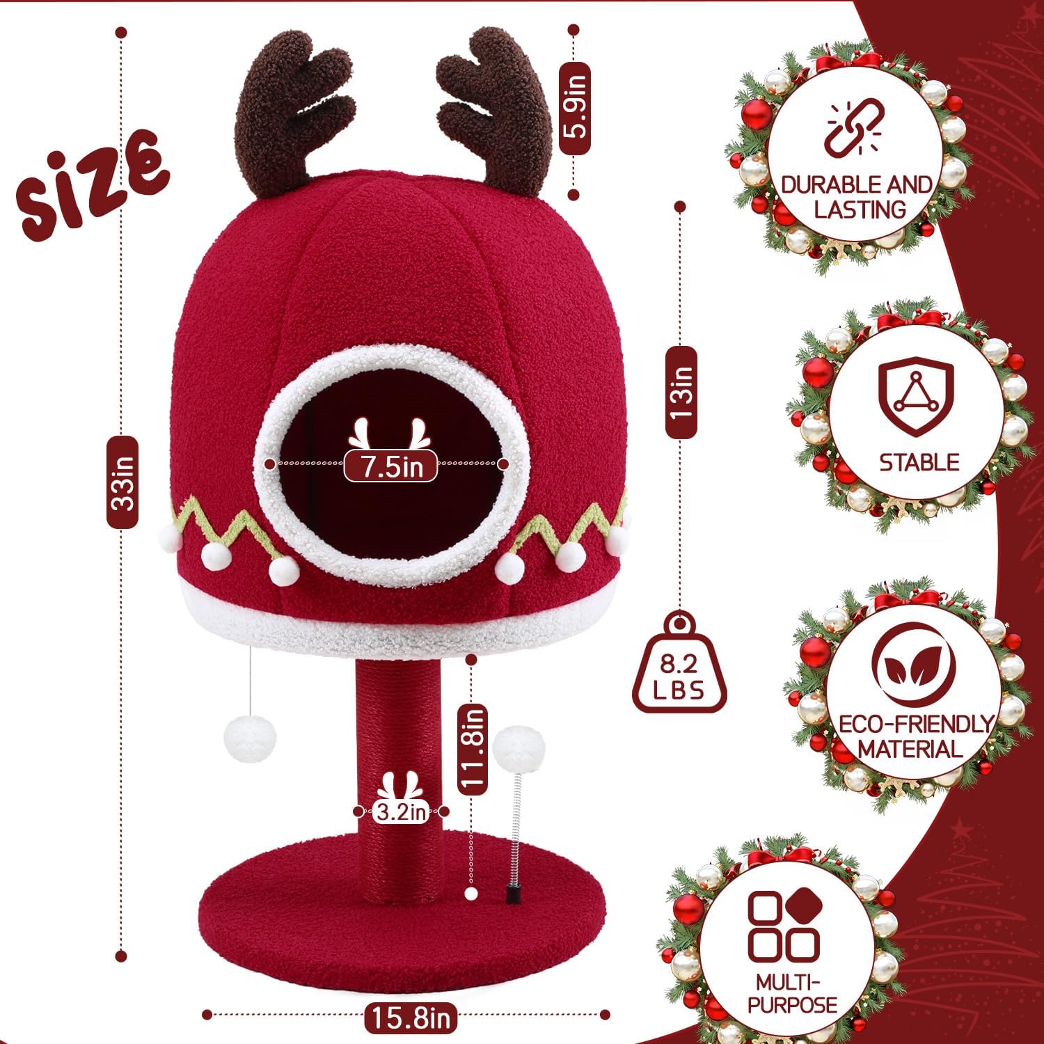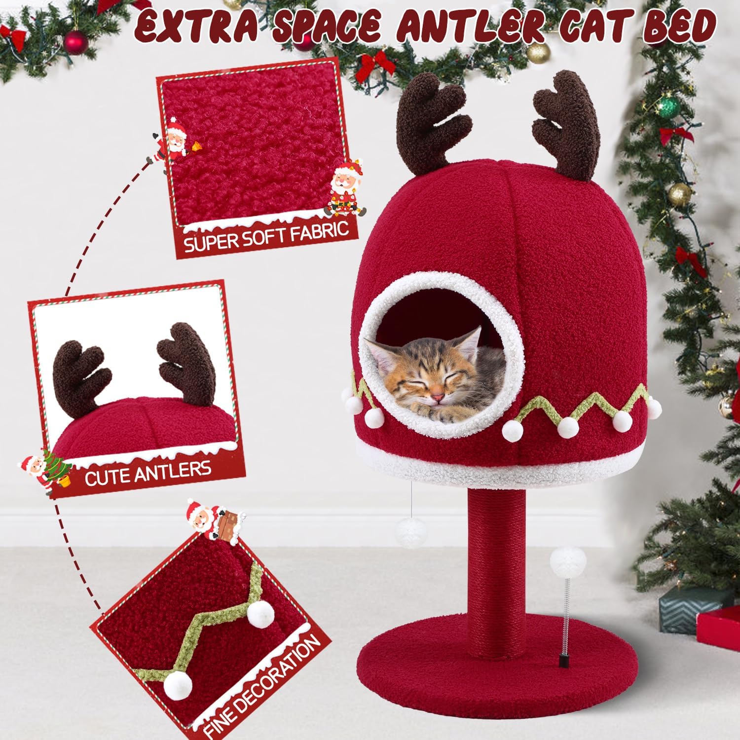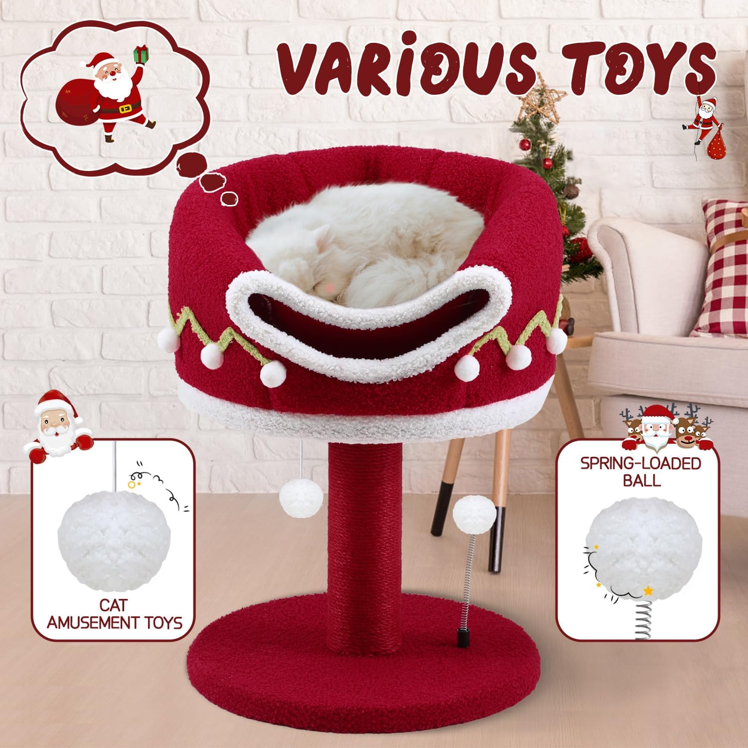 - CHRISTMAS CAT TOWER - We designed this Christmas theme cat tower specifically for cats, the bright red color is striking, it is the most suitable Christmas gift for cats. It's an excellent cat activity center, where you can meet your cat's multiple needs of scratching, climbing, moving and relaxing. And the modern design is suitable for most homes and can be placed anywhere in your home as a decoration.