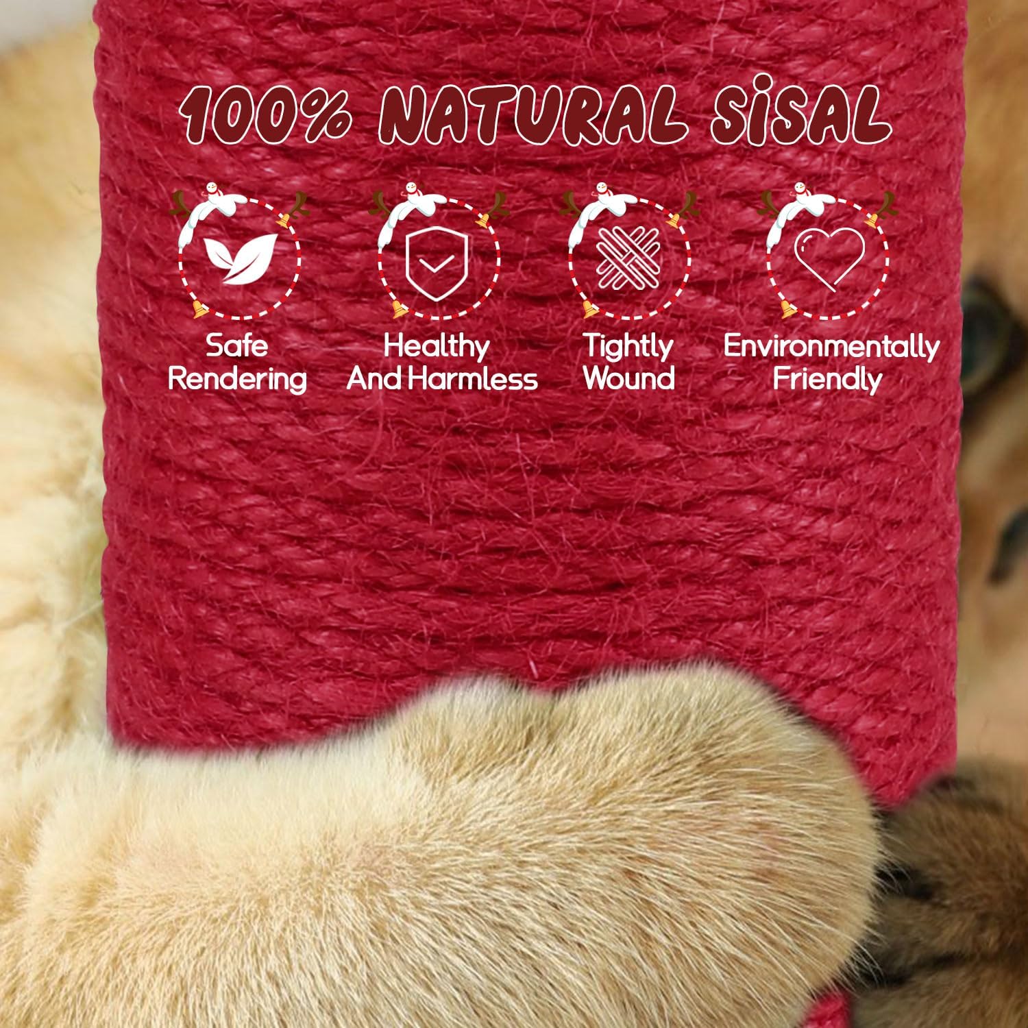 - 100% NATURAL PREMIUM QUALITY SISAL - This unique cat scratching post is made of high quality sisal winding, safe and harmless, protects the health of your cat's claws and is very durable. It can prevent your cat from destroying your furniture and attract your cat's attention.