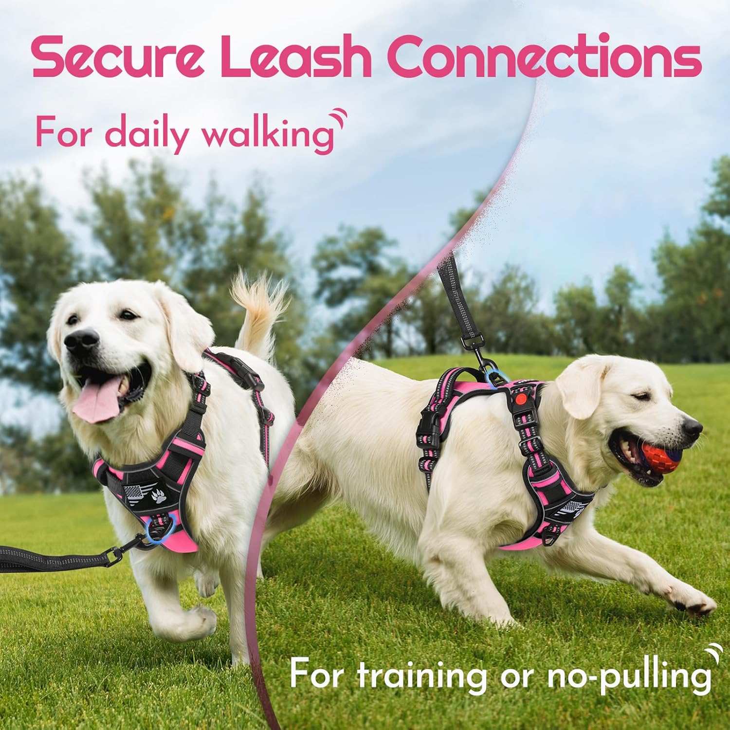 Eagloo Dog Harness for Large Dogs, Easy Wearing with 3 Buckles, Adjustable No Pull Pet Harness with 2 Rings for Walking, No Chock Reflective Soft Padded Vest with Control Handle, Pink & Black, XL